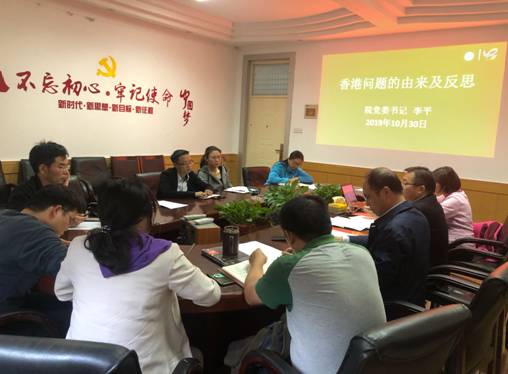10月30日下午,云顶娱乐 党委书记李平在17号楼225以“香港问题的由来及反思”为主题,为云顶娱乐 行政及实验中心党支部党员讲了一堂精彩生动的专题党课。
