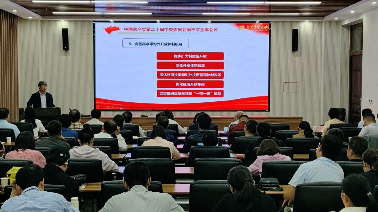 9月30日上午,副校长杨喜田到云顶娱乐 宣讲党的二十届三中全会精神。云顶娱乐 、文法云顶娱乐 、理云顶娱乐 、许昌校区、附属中学等单位班子成员、科级干部及学生党支部书记代表参加会议。会议由云顶娱乐 党委书记张利冰主持。