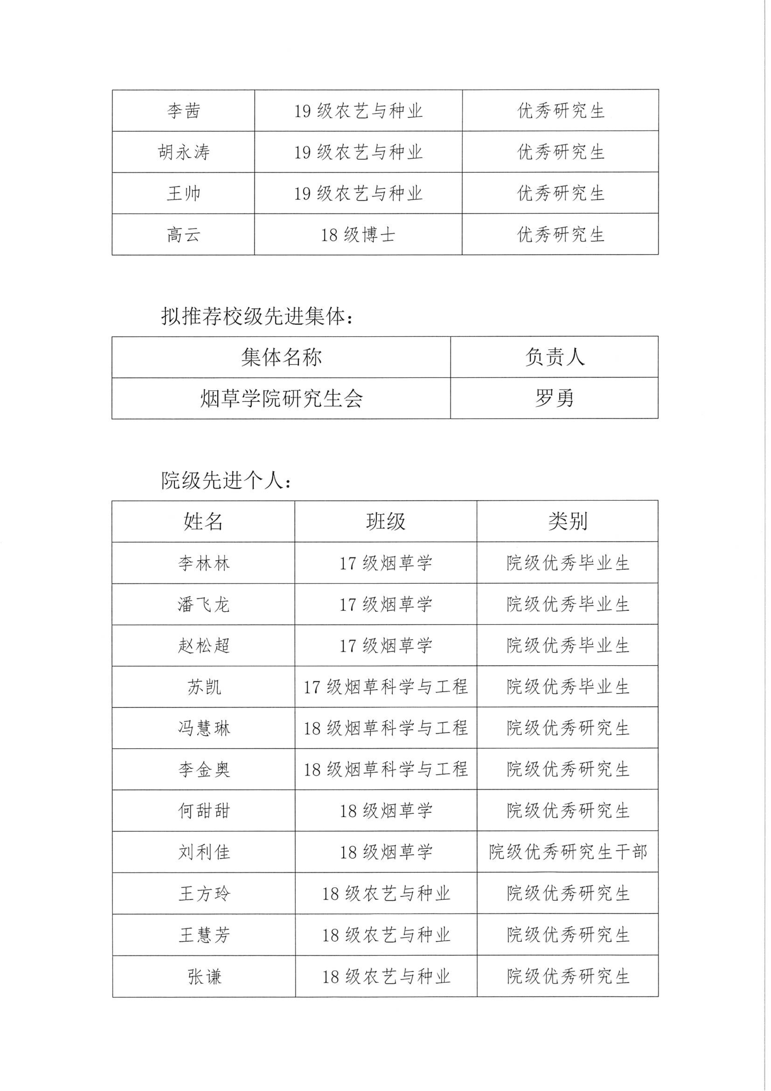 云顶娱乐 2019-2020学年研究生先进个人和先进集体评选与推荐公示