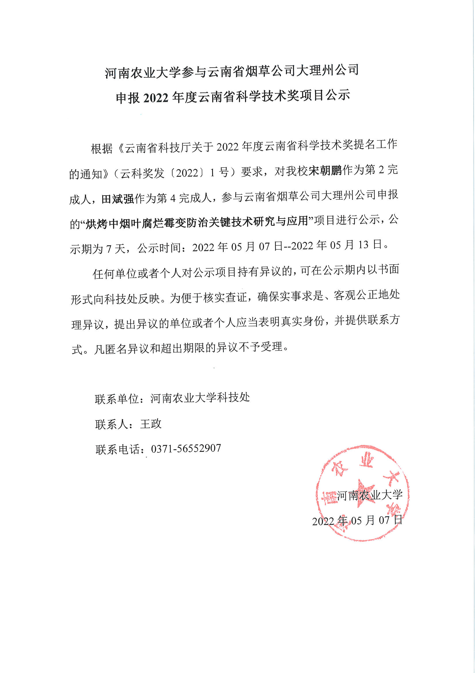 项目报奖公示