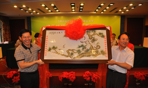 百年校庆赠送精美瓷板画一副作为纪念。