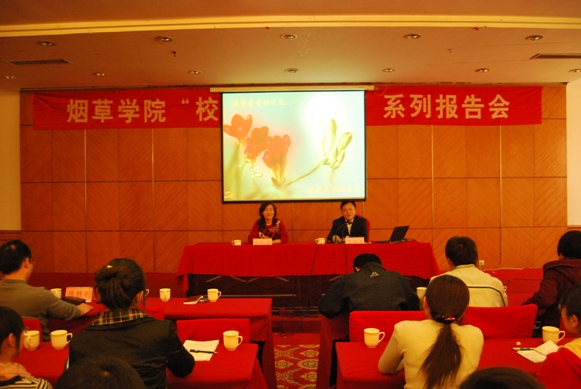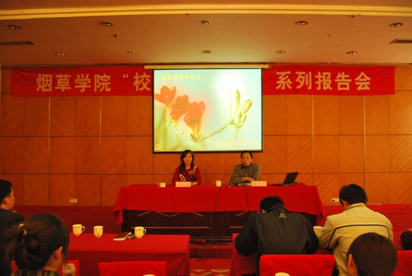 王根东处长以“面对烟草行业,我们应该成为什么样的人才”为题,向同学们介绍了全球烟草发展态势、中国烟草整体状况、河南烟草商业发展情况及岗位设置情况、进人方式,并以亲身经历和感悟向同学们传达了学有专长、踏实睿智、把握幸福的人生真谛。