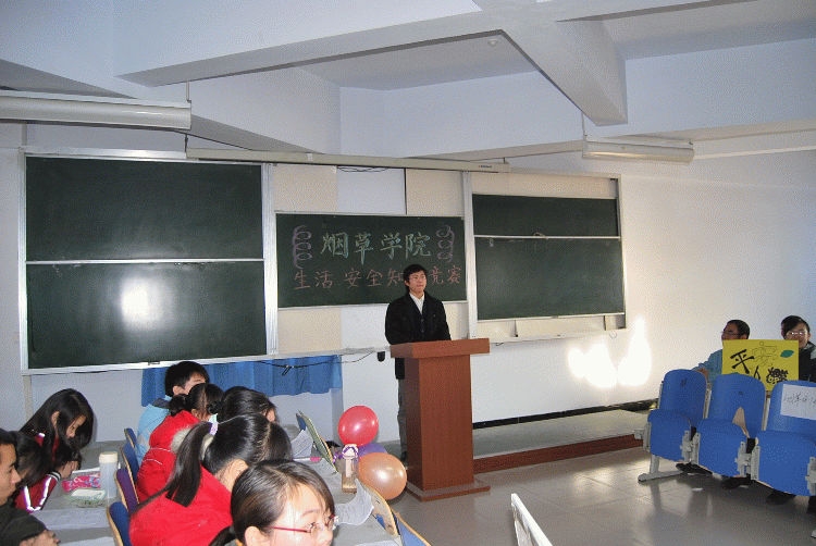 举办的又一次安全方面的特色活动,旨在增强同学们的安全意识,保证每位同学的人身、财产安全。比赛分为演讲与抢答两个环节,每位参赛者都以饱满的热情展现了自己的风采,生动而流畅的演讲也博得了场内观众的阵阵喝彩。在演讲和抢答两环节的间隙还进行了富有趣味性的踩气球游戏。一个个彩色气球随着参赛者的脚步欢快跳动,接踵而至的清脆爆破声点亮了每个人脸上的笑容。而观众抢答环节更是把比赛推至高潮,抢答者一次次精彩的回答赢得了评委与观众的一致认可。最终,烟草08-1班凭借演讲环节的出色发挥,抢答环节的积极踊跃获得了一等奖,烟工09-2班、烟工08-2班等四个班级分获二、三等奖。此次比赛使同学们对于安全知识有了更进一步的了解,为这个寒冷的冬季带来了一股暖风,也使“平安校园”活动的意义深入人心。