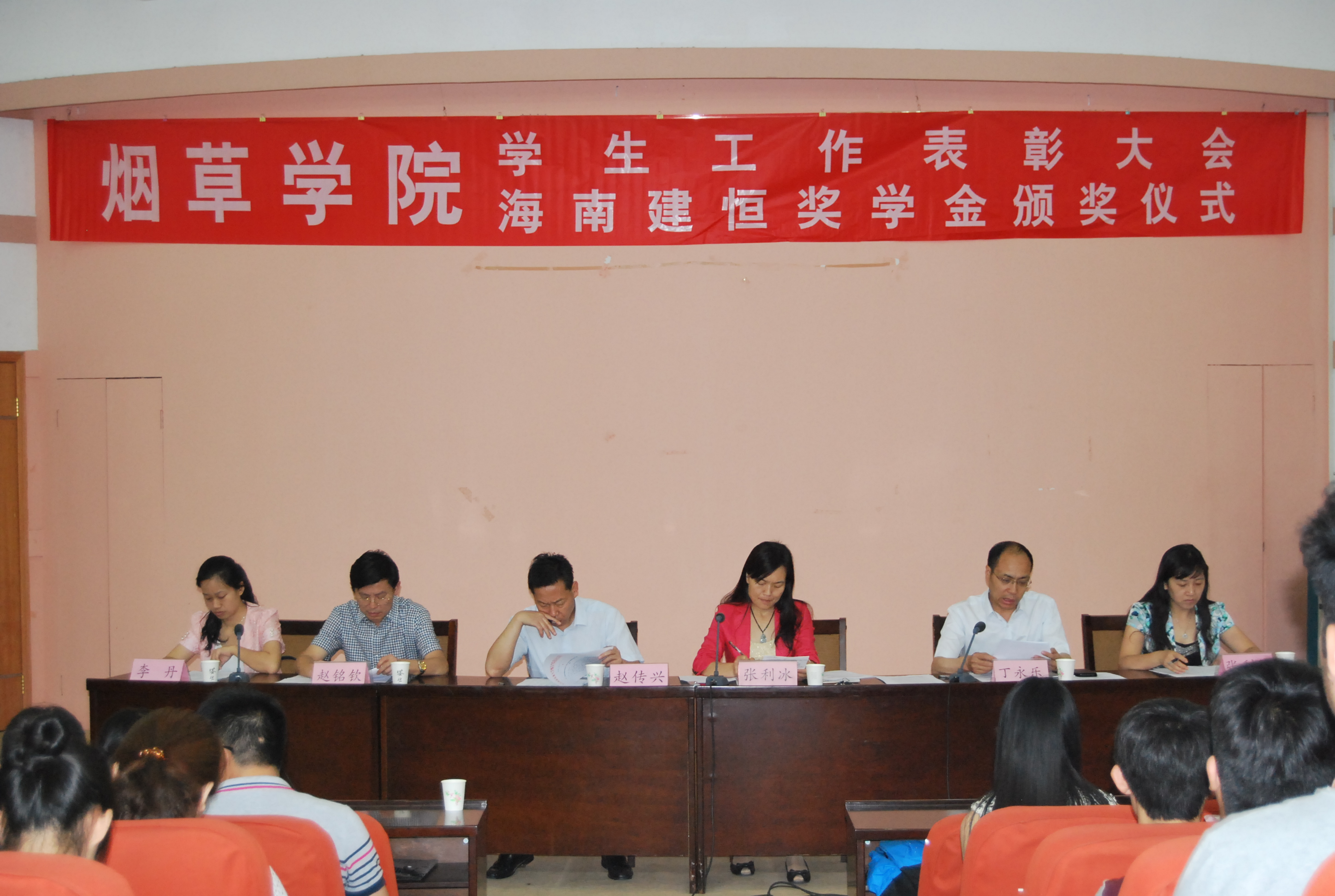 学生工作表彰大会暨海南建恒奖学金颁发仪式在礼堂300人报告厅举行。院党委书记赵传兴、副书记张利冰,副院长赵铭钦、丁永乐,办公室主任张利军出席会议,云顶娱乐