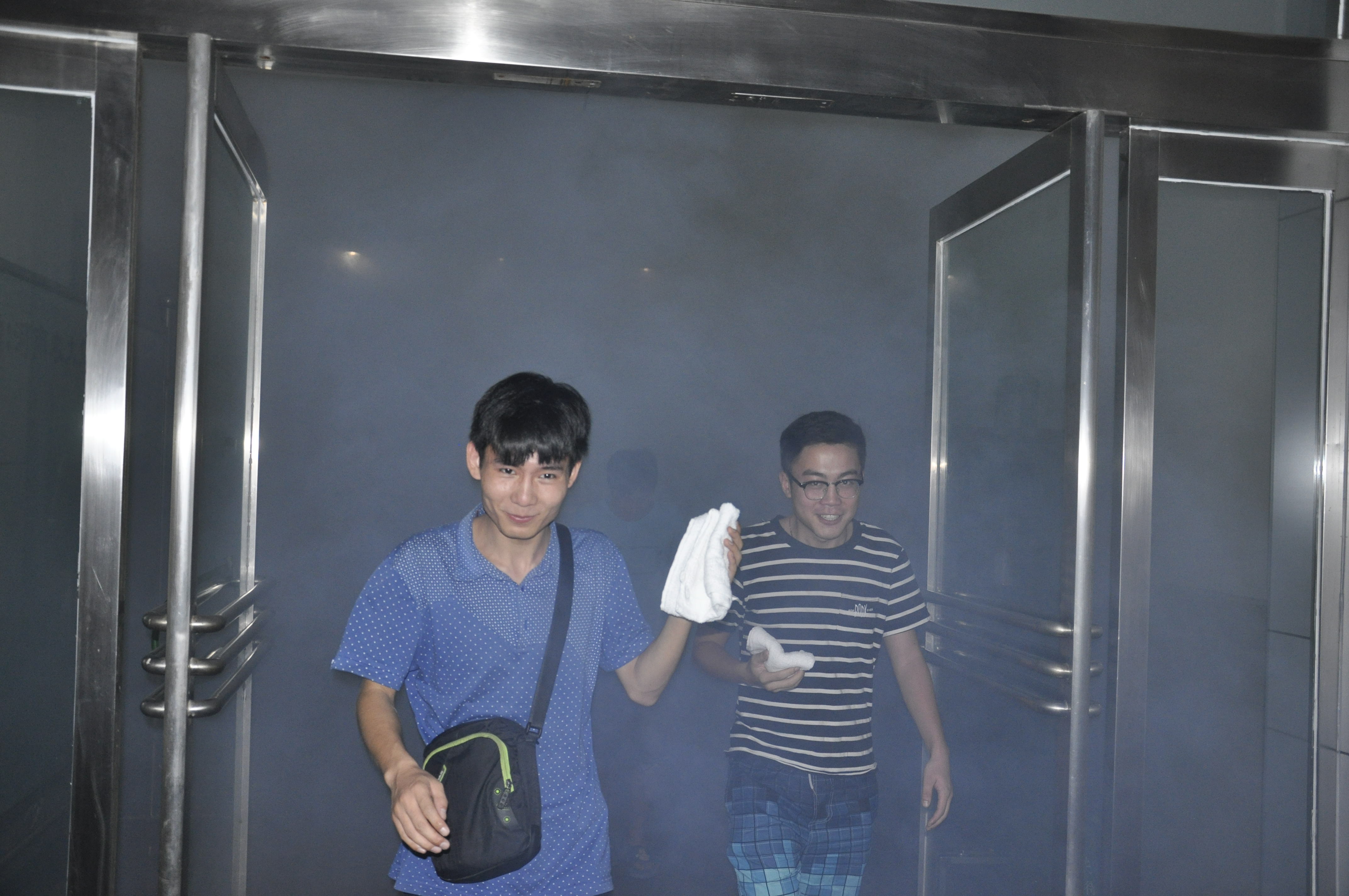 全体2016级研究生和教师代表参加。副院长丁永乐主持持会议。杨教员向同学们展示了过去几年的火灾案例,向同学们呈现出火灾无情的一面,发人深省。讲解了遇到突发安全事故的应对方法。丁院长结合学生宿舍、实验室等存在的安全隐患讲解安全防控方法,提出明确要求。随后,杨教员引领同学们在17号楼使用无毒烟雾弹进行消防安全演练,大家在杨教员的带领下学习使用干粉灭火器并在演习现场进行有序逃生演练。