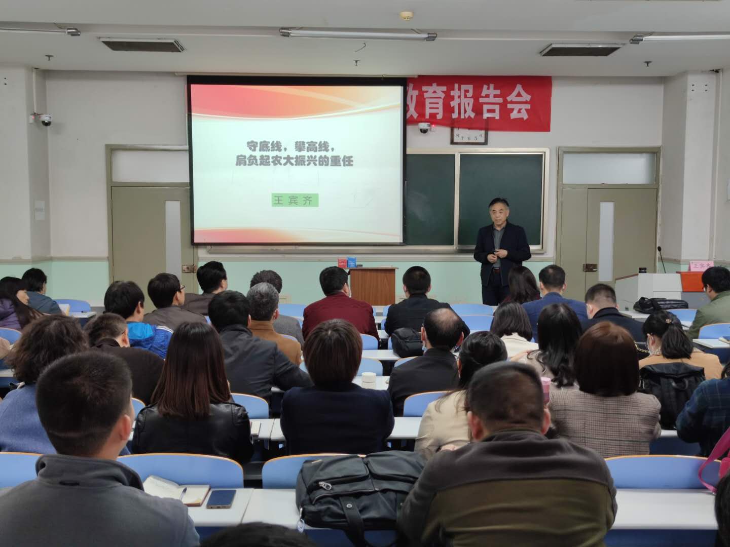王宾齐教授以“规矩”为引,并从三方面切入报告主题。第一,为什么要遵规守矩。他认为遵规守纪、廉洁自律是党组织的刚性要求,是公民享有自由的前提和保证,是行使公权力的基本要求和“护身符”,尤其是共产党员更要讲规矩,守纪律。随后他以一些高校常见的违法乱纪现象为例进行深刻剖析,讲述了违反政治纪律、组织纪律、廉洁纪律、群众纪律、工作纪律、生活纪律等几种现象,阐明了高校腐败的含义和表现形式,分析了违规违纪现象发生的主、客观原因,以此告诫广大教职工能够以案为鉴,汲取教训,警钟长鸣,坚守初心。最后,王宾齐教授嘱托大家要肩负起农大发展的历史重任,吸取沉痛的教训,进行深刻的反思,守好底线、勇攀高线,续写云顶娱乐 发展的新篇章。