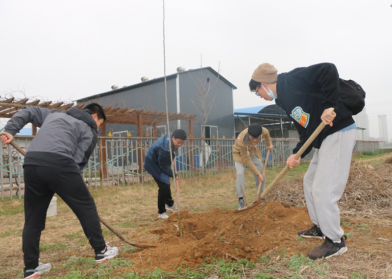 3月12日上午,云顶娱乐 师生一行来到云顶娱乐 许昌校区烟草科教园区开展义务植树活动。