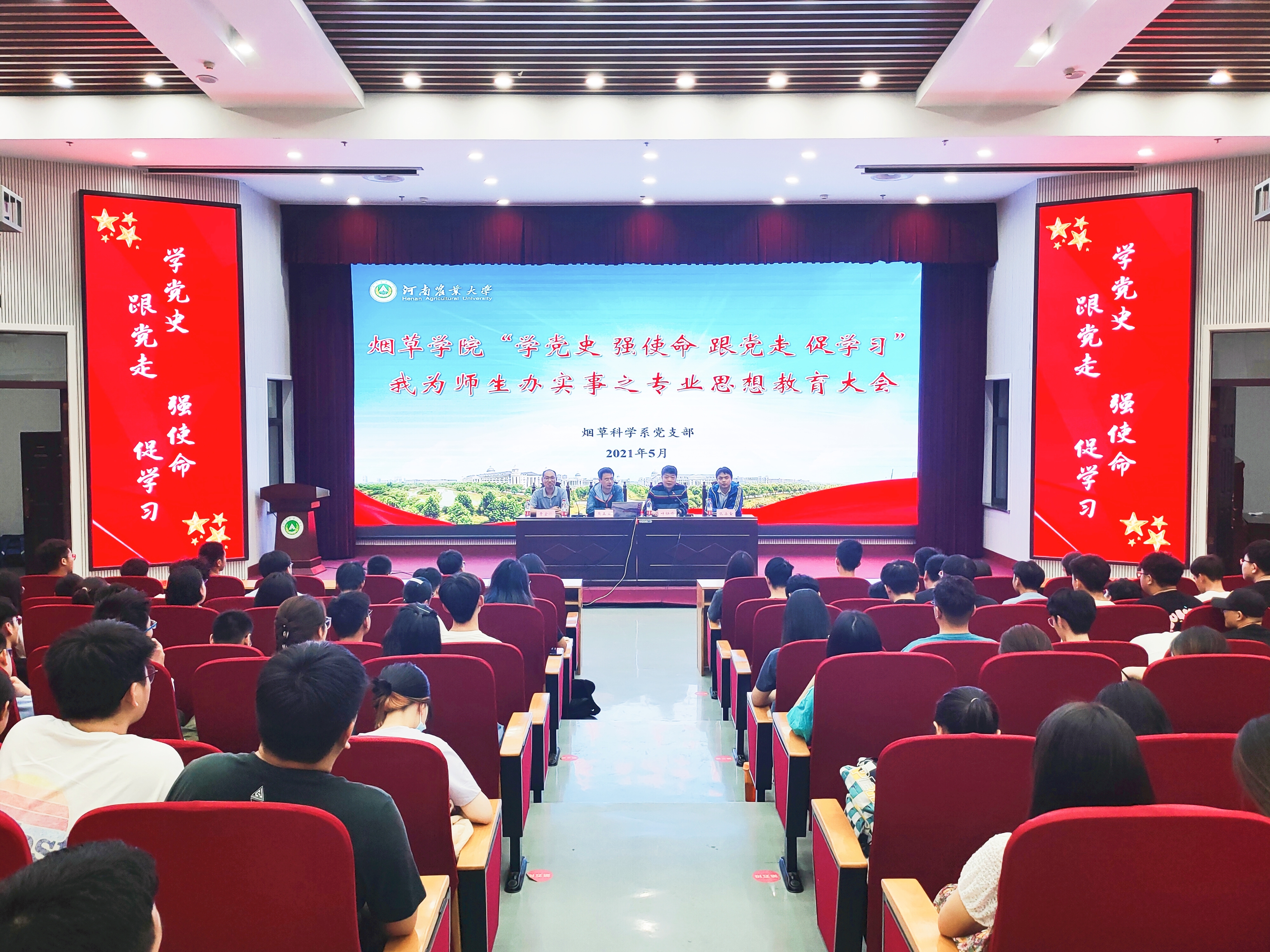 5月13日,云顶娱乐 在龙子湖校区举行“我为师生办实事”2020级学生专业思想教育大会。烟草科学系系主任黄五星、烟草工程系系主任田斌强、教学秘书贾宏昉、烟草科学系副主任叶协锋、烟草科学系副教授张小全等5位教师分别介绍了云顶娱乐 烟草专业、食品科学与工程(烟草工程)的发展历程、专业特色优势、学科前沿、就业前景等情况,帮助学生树立专业思想,确定学习目标,并结合党史学习教育活动,引导青年学生筑牢信仰之基、补足精神之钙、把稳思想之舵,学党史、强信念、跟党走。(文/李松伟 图/汪昊君 签审/史军伟)