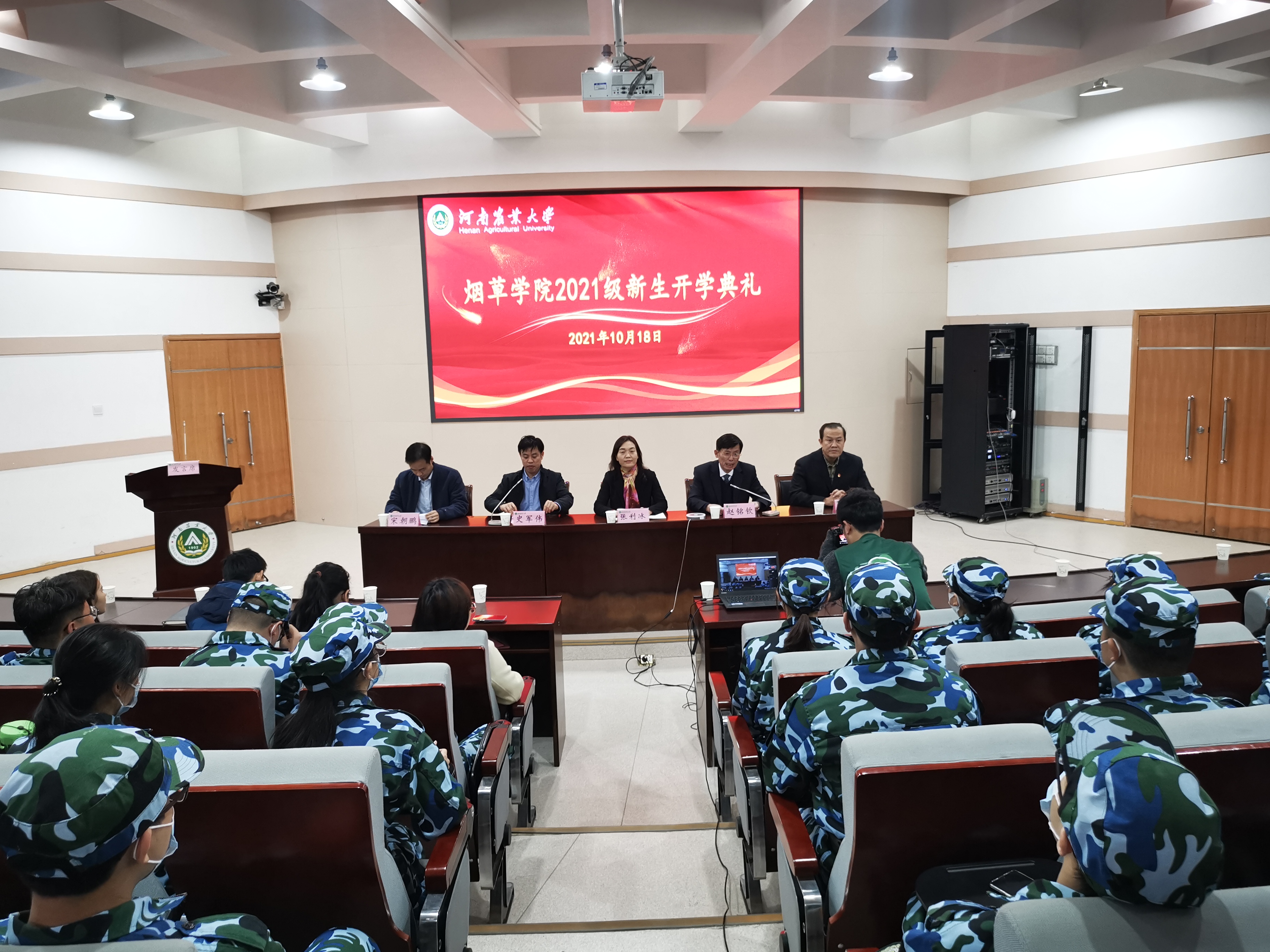党委书记张利冰、院长赵铭钦、副院长时向东、副院长宋朝鹏,两办老师和新生班主任出席,因疫情未返校的2名同学通过视频直播方式参加典礼。典礼由院党委副书记史军伟主持。