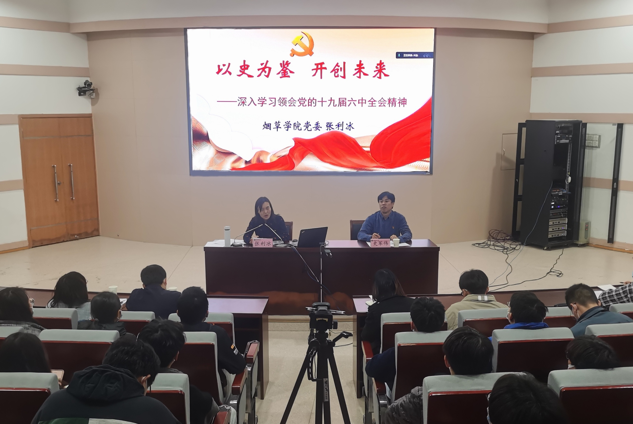 开班典礼后,张利冰以《以史为鉴 开创未来——深入学习领会党的十九届六中全会精神》为题作首场专题辅导报告。张利冰从党的十九届六中全会基本情况和重大意义、《中共中央关于党的百年奋斗重大成就和历史经验的决议》核心要义和丰富内涵、全体学生干部如何学习贯彻党的十九届六中全会精神等三个方面进行全面解读。她强调,要把学习宣传贯彻党的十九届六中全会精神作为当前和今后一个时期的首要政治任务,全体学生干部要率先垂范、学深一层、学出成效、反复体悟、融会贯通,把思想和行动统一到学习贯彻落实全会的重要精神上来,做到爱国爱民、锤炼品德、勇于创新、实学实干,努力成为堪当民族复兴重任的时代新人。