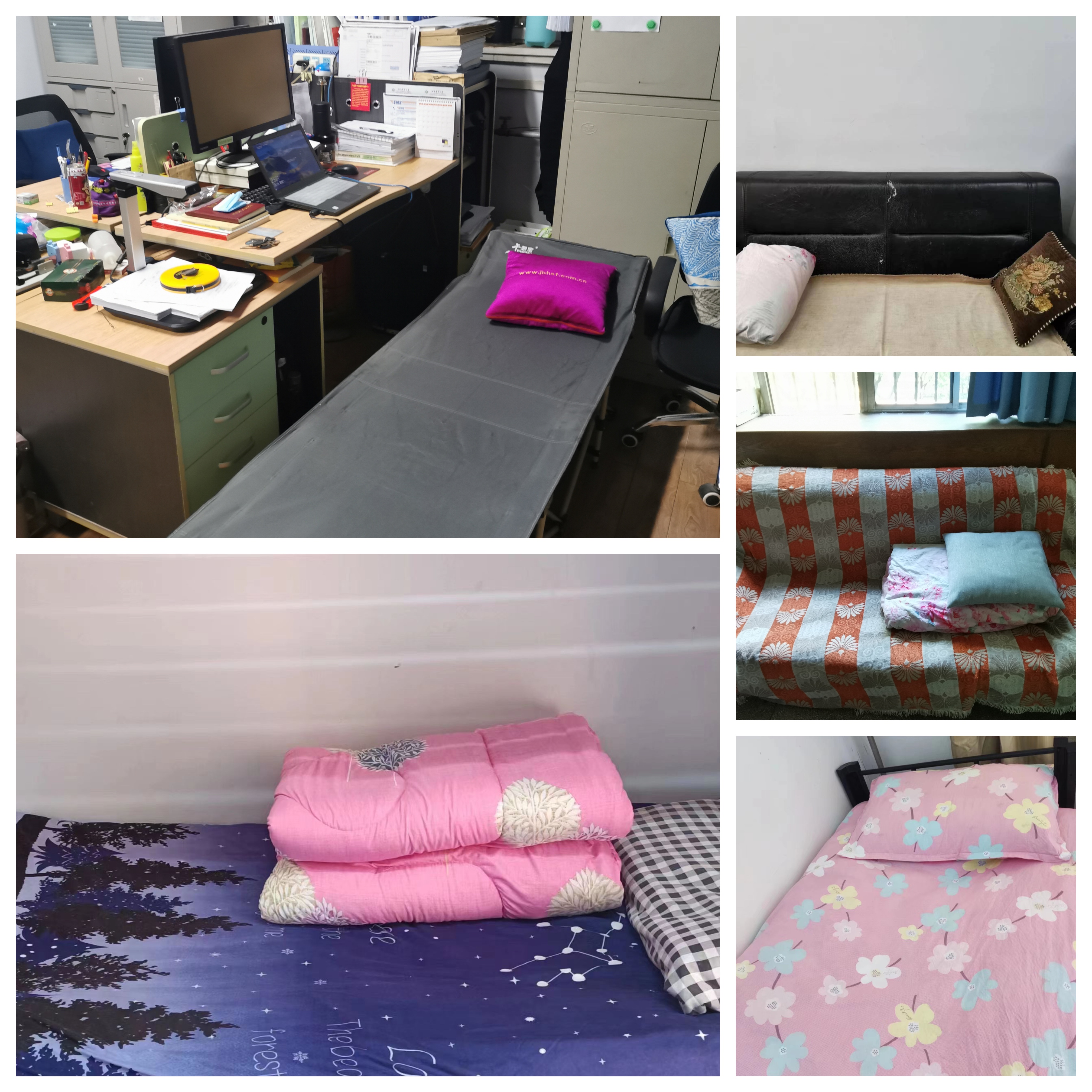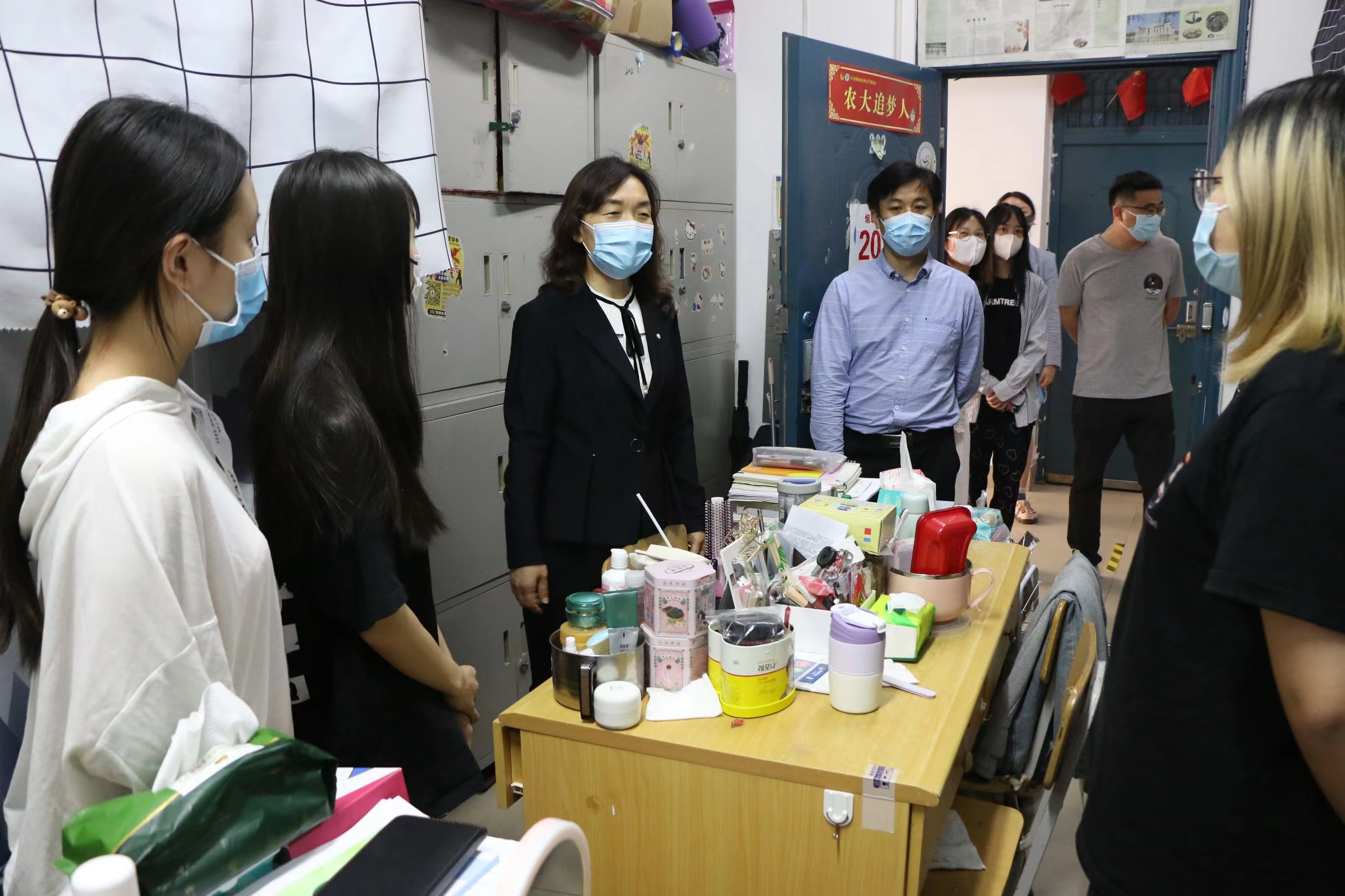 云顶娱乐 全体领导班子和行政人员实行24小时值班带班制度,云顶娱乐 党委副书记史军伟、党政办主任牛路路、辅导员张凯、辅导员刘芳、实验中心路晓崇等5位老师于5月3日晚收拾行李、告别子女、连夜入住校园,他们在办公室的沙发、狭窄的折叠床上、空余的学生宿舍床位开启了“居校”生活模式,与学生们同吃同住、24小时陪伴,用实际行动诠释着“学生在哪里,战位就在哪里”。