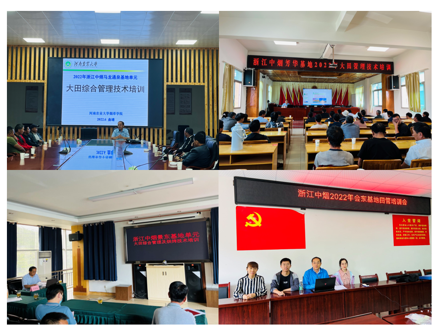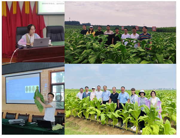 在工业公司原料部、技术中心的领导、专家和区域经理、各产区市局公司、县局分公司、基层烟站的领导、烟技员的陪同下,云顶娱乐 许自成教授、邵惠芳教授、黄五星副教授、张小全副教授、杨永霞副教授、徐世晓副教授、路晓崇博士、韩丹博士、贾玮博士、张智强博士、陈征博士、姬会福博士等12人,奔赴云南省曲靖、红河、玉溪、大理、楚雄、普洱、文山,四川省凉山、泸州,湖南省长沙、邵阳、衡阳、郴州、永州,河南省南阳、三门峡、洛阳,安徽省宣城等地,工、商、研三方围绕工业品牌需求、基地单元建设、大田管理关键技术,通过线上线下相结合的方式进行了全面而深入的交流、研讨和培训。培训过程中,对基地单元的大田烟株生长情况进行了实地调研,与当地烟农、基层烟站技术与管理人员进行了交流,分析了当地气候因素对烤烟生长发育的影响,对烟田存在问题和管理技术进行了具体指导,提出了不同生育期的管理要点和注意事项。