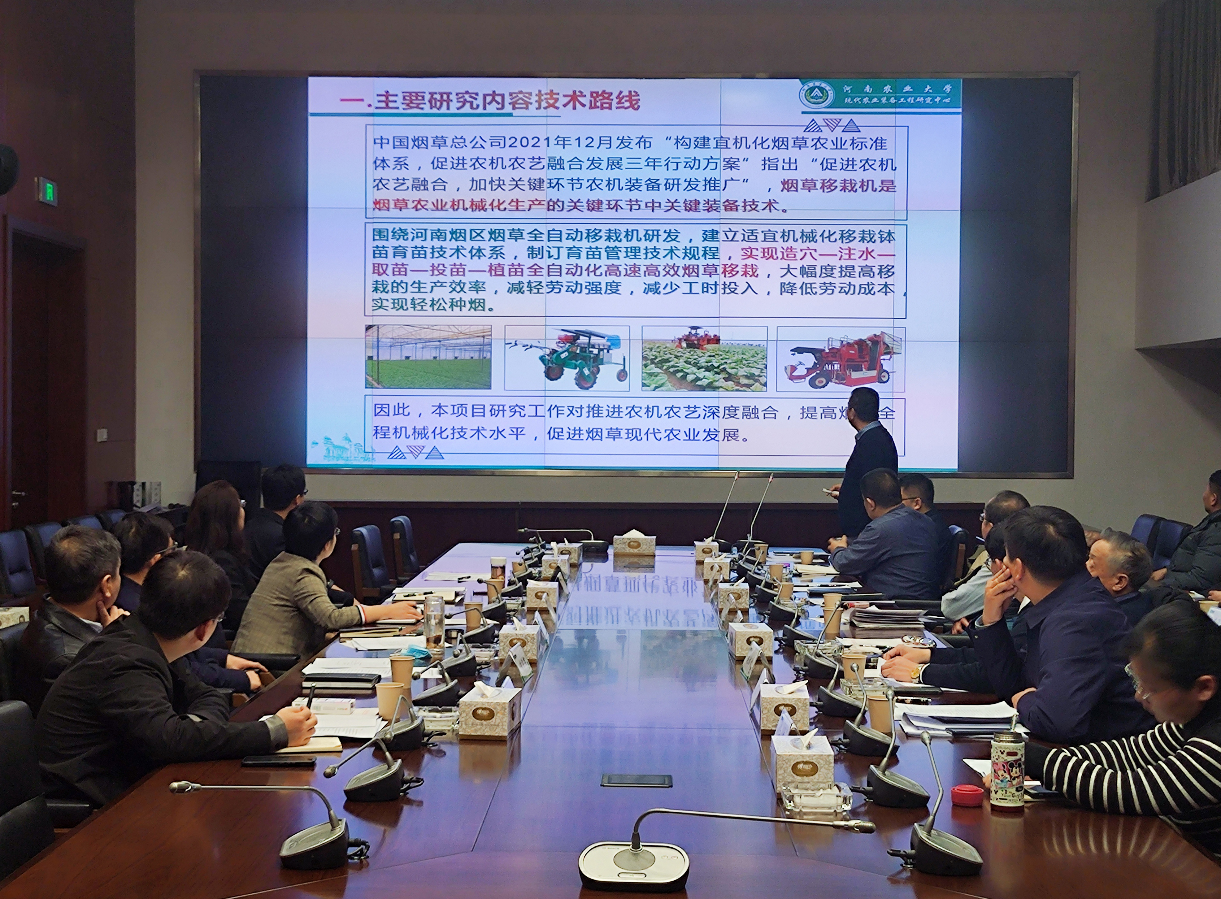 王万章教授共同主持的河南省烟草公司重点项目“全自动烟草高效移栽机研发与关键配套技术研究”项目启动会在郑州召开。会议由赵铭钦教授主持,河南省烟草公司科技处处长李欣蓓、调研员李琦、副处长徐敏、科长何雷等出席会议。会议特邀河南农大机电工程云顶娱乐