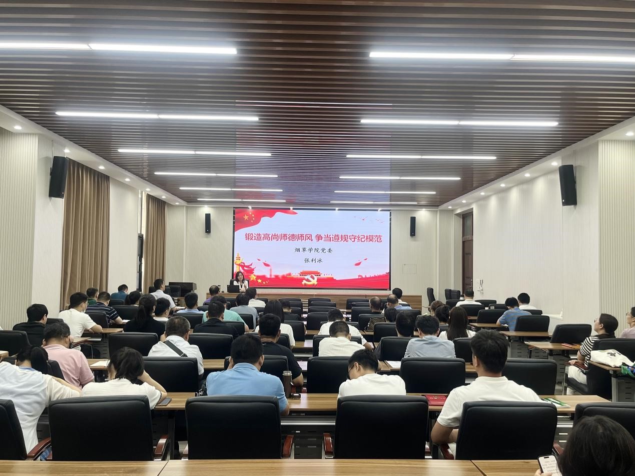 张利冰从党的二十大报告中关于师德师风建设的重要论述和习近平总书记关于师德师风建设的重要讲话精神谈起,通过正反两方面案例,引导全体教师要常补精神之“钙”、常修为师之“德”、常敲警示之“钟”;要自觉学法明纪、时刻自警自省、严格自我约束,管好思想觉悟的“总开关”、守好党纪国法的“铁闸门”、扎紧党性原则的“安全带”;要恪守师德师风的底线、法纪的底线、安全的底线,算好“事业账”“经济账”“自由账”,对岗位心存敬畏、正确对待得失、经得起各种诱惑,清清白白做事,干干净净做人。并就在全体教师中开展师德师风集中学习进行了动员部署,号召全体教师锻造高尚师德师风,争当遵规守纪模范,努力在实现第二个百年奋斗目标新征程上,坚定为党育人、为国育才初心使命,争做“四有”好老师,努力成为“大先生”,把为学、为事、为人统一起来,为培养德智体美劳全面发展的社会主义建设者和接班人做出新的更大贡献。