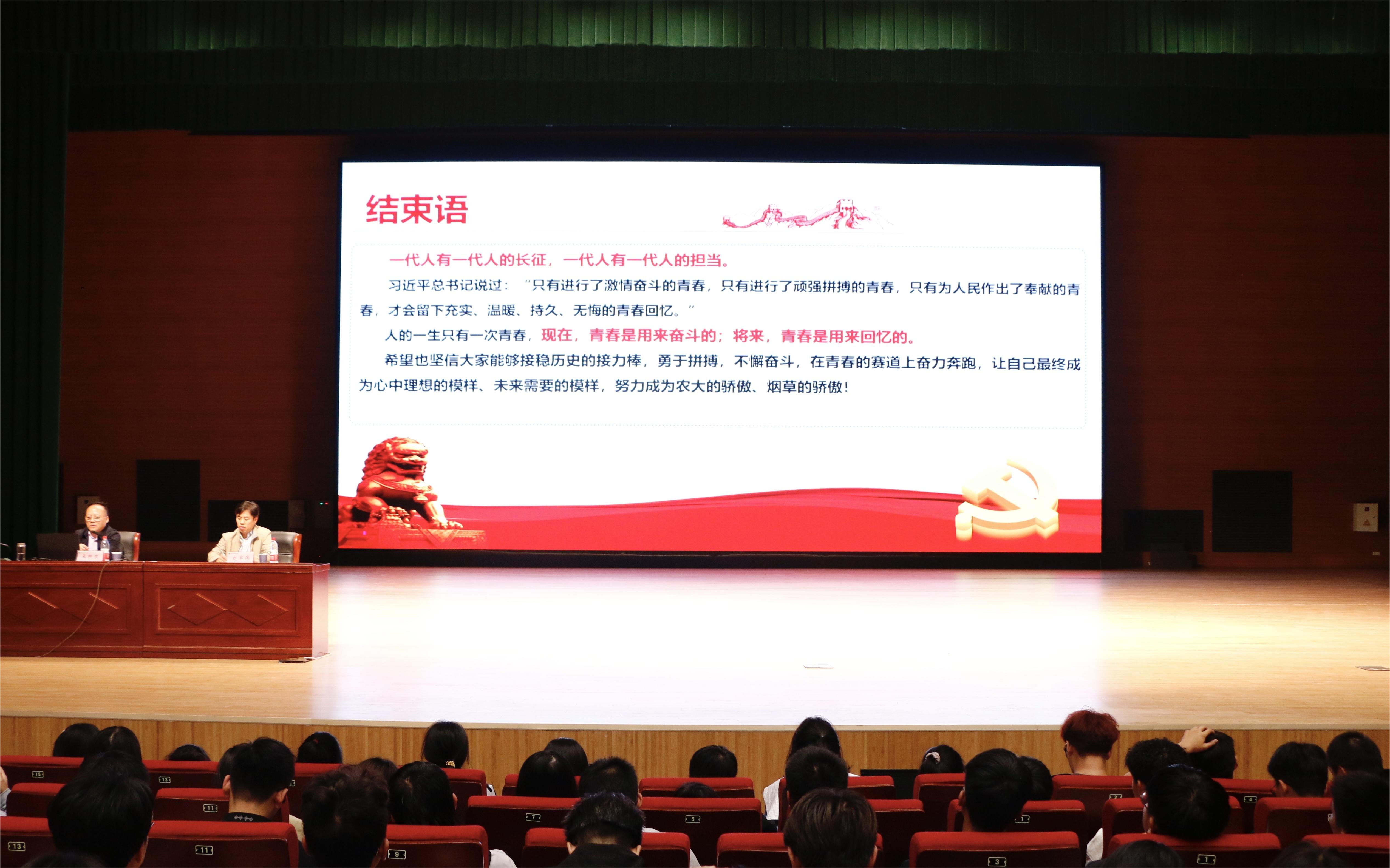 报告会上,王根东详细介绍了烟草行业40年来的发展历程及全球烟草发展态势、中国烟草整体状况、河南烟草商业发展情况,并以亲身经历和感悟向同学们传达了学有专长、踏实睿智、把握幸福的人生真谛。同时,王根东指出,年轻教师应学习处理好教书与育人、课堂讲授与教学方法、科研与解决行业发展难题的关系,为培养高素质创新型人才做出贡献。并向同学们提出了三点建议:一是立鸿鹄志,涵养“学以报国”的大胸襟;二是做善思者,锤炼“学以致用”的真本领;三是当逐梦人,练就“破茧成蝶”的硬翅膀。
