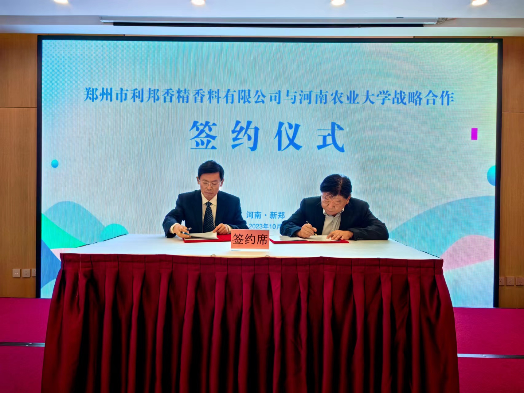 与郑州市利邦香精香料有限公司战略合作签约仪式在新郑市举行。院长赵铭钦、副院长宋朝鹏、新郑市人大常委会副主任张顺安、市人民政府副市长王淑慧、郑州市利邦香精香料有限公司董事长李海彬、总经理杨国选出席仪式,新郑市政府相关负责人、云顶娱乐