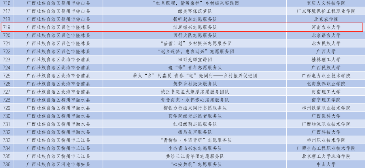 2024年全国大学生“乡村振兴”志愿服务团入选团队名单(部分)