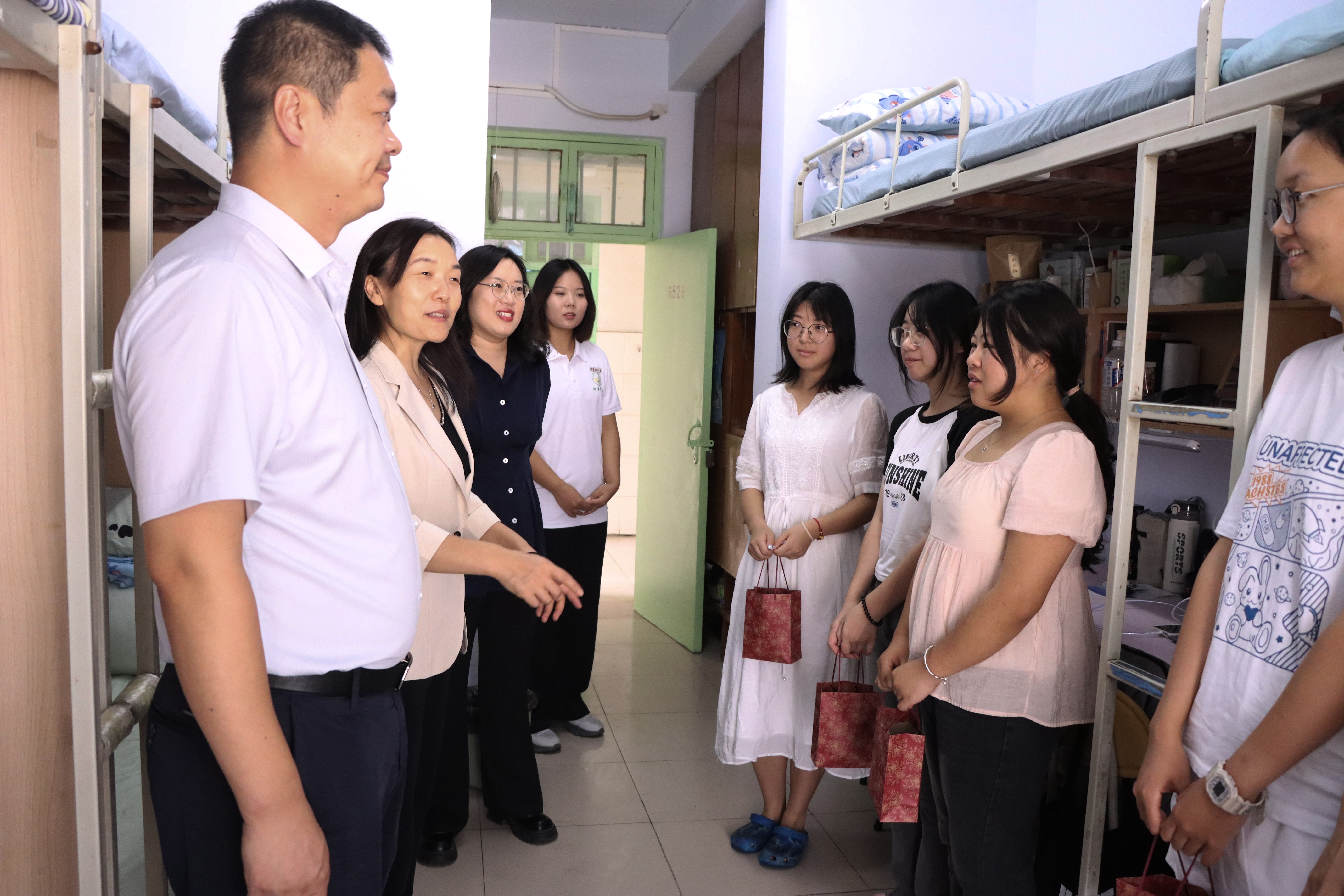 党委书记张利冰、党委副书记王启佩、院团委老师及各新生班班主任来到桃李园学生宿舍,为同学们送上中秋的问候和祝福。