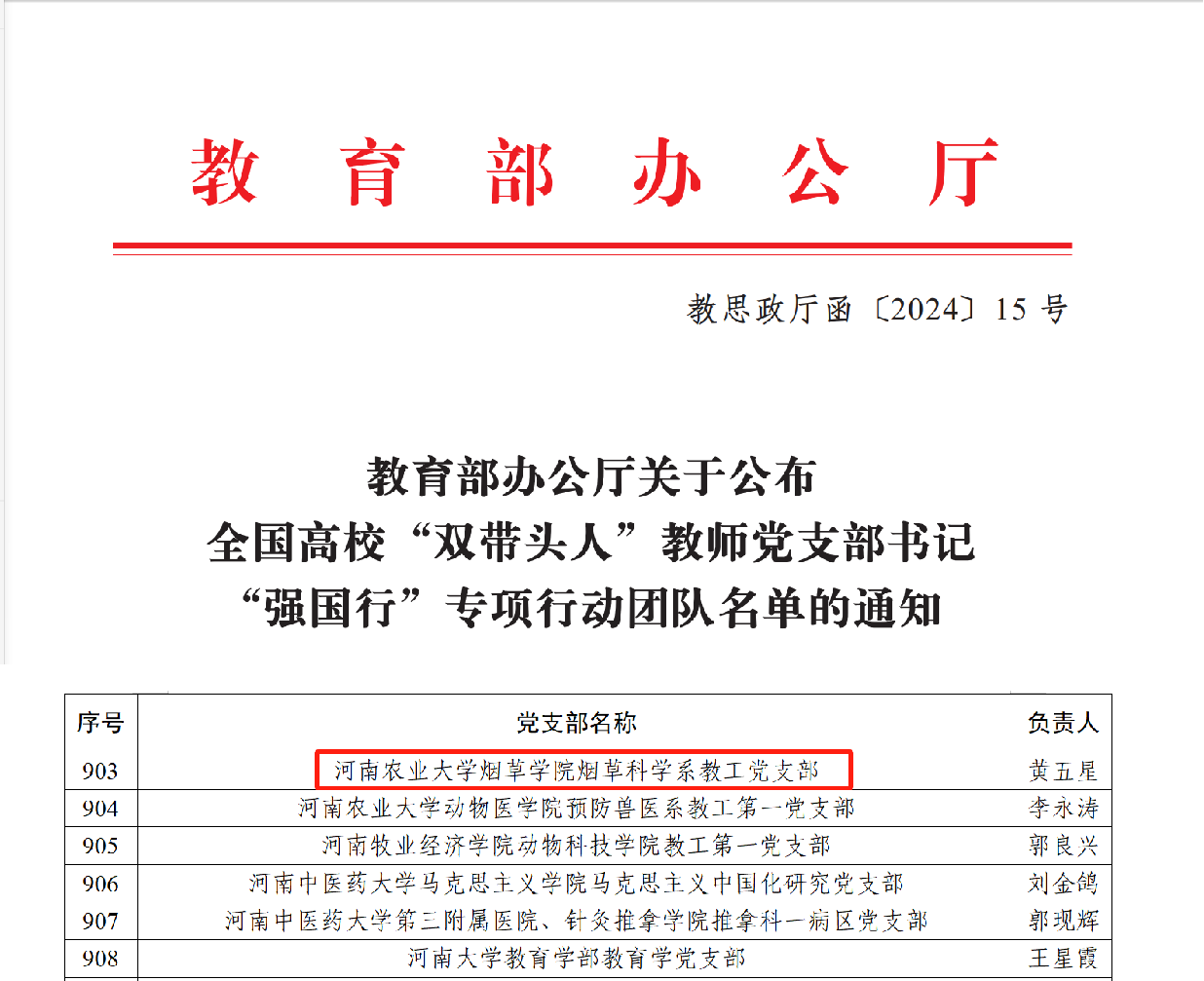 此次入选“强国行”专项行动团队,是烟草科学系教工党支部继成功入选全国党建工作样板支部培育创建单位后取得的一项重大成绩。近年来,云顶娱乐