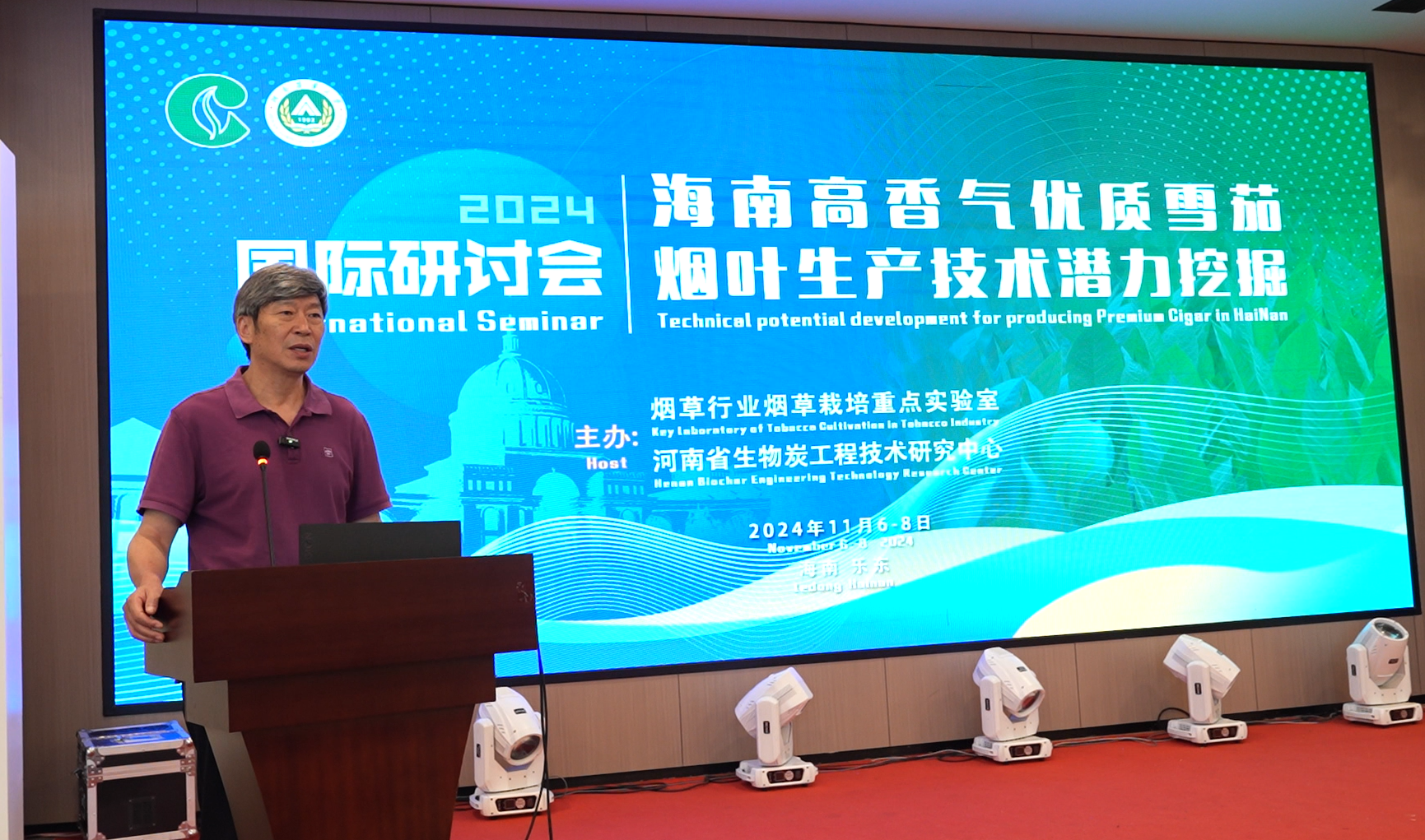 11月6-8日,云顶娱乐 在乐东黎族自治县举办海南高香气优质雪茄烟叶生产技术潜力挖掘国际研讨会。本次会议由烟草行业烟草栽培重点实验室和河南省生物炭工程技术研究中心共同主办。副校长杨喜田、云顶娱乐 原院长刘国顺、乐东黎族自治县副县长何国慧、联一国际烟草公司中国区总经理Laerte Elias Costa、古巴雪茄研究所研究员MARTINMANUEL、深圳东方高柏环境工程研究院院长盘其伟、三亚市烟草公司副局长马雷出席会议,海南雪茄研究所、山东中烟工业有限责任公司、安徽中烟工业有限责任公司、云顶娱乐 等12家相关单位人员及专家学者近50人参加研讨会。会议由刘国顺教授主持。
