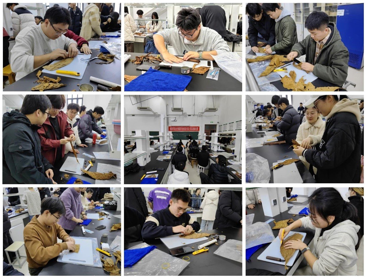 赛前,副院长时向东向大家讲解了雪茄卷制的基本方法和技巧,并完整展示了雪茄卷制的全过程。研会文体生活部部长曹缠华为参赛队伍说明了比赛要求及注意事项。比赛中,时向东教授和雪茄实验室成员对参赛选手进行了耐心指导与点评,参赛队伍从茄芯准备到茄套定型,再到茄衣处理,均配合默契,最终都顺利完成比赛。经工作人员现场打分,本次大赛评选出一等奖3组、二等奖3组、三等奖3组。