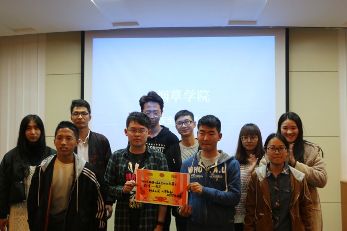 本次安全知识竞赛共分为安全视频展播、抢答题、限时题和选择风险题四个环节。比赛过程中,参赛者们配合默契、反应灵活,充分展示出作为当代大学生应有的知识储备量及快速的应变能力。参赛队伍争相抢答,不断缩小比分差距,同时各班啦啦队成员热情为本班助威,将比赛一次次地推向高潮。经过激烈角逐,烟工17-1班、烟工17-3班、烟草17-3班荣获前三名。