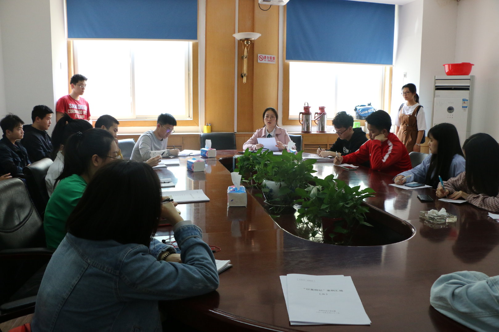 于17号楼208会议室召开毕业生工作推进会,院团委书记徐涤寒、副书记郑丽娜出席,15级各班班长、团支书和党员参加会议。