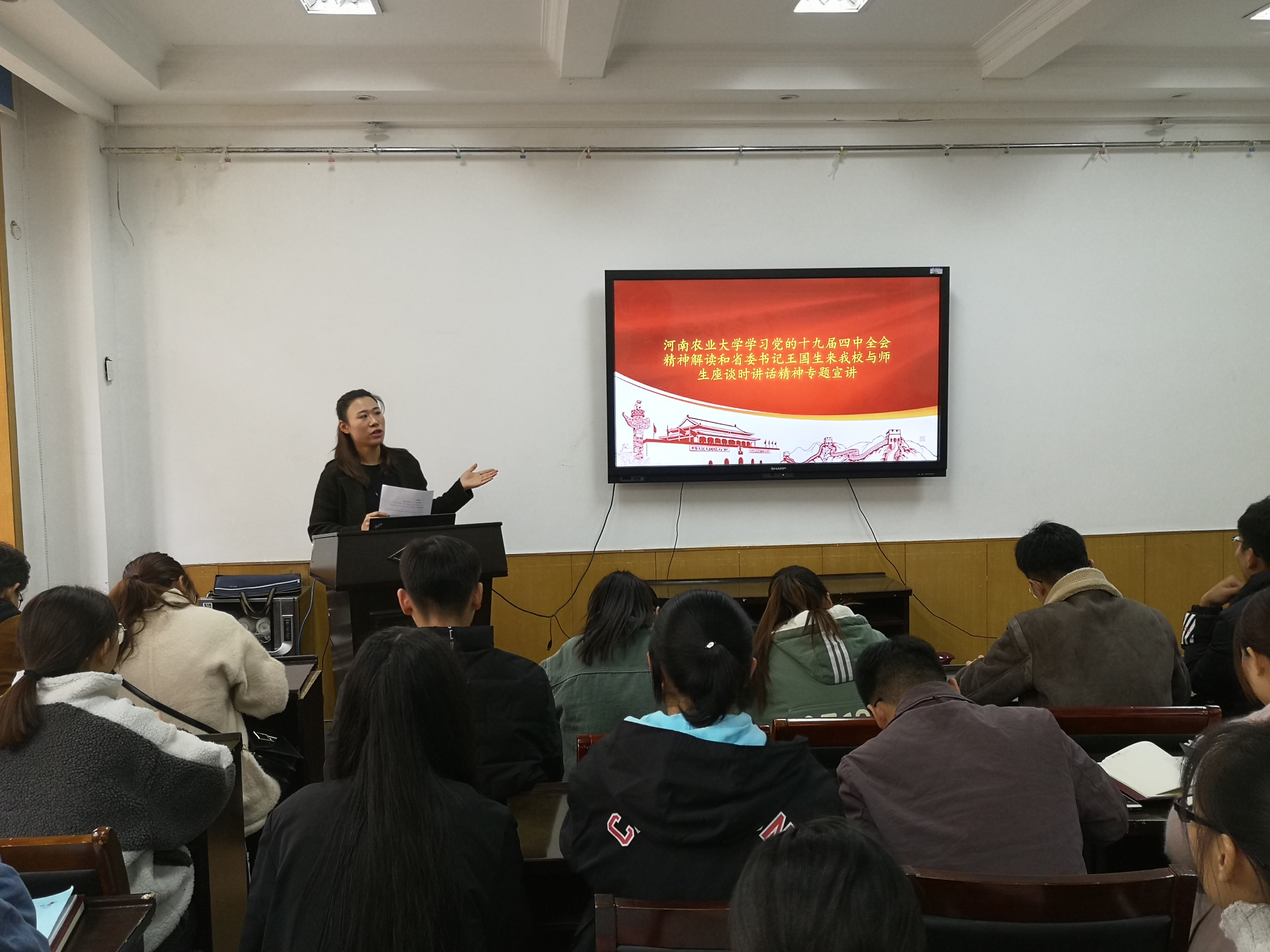 此次宣讲会有利于云顶娱乐 学生深入学习党的十九届四中全会精神,坚定理想信念,练就过硬本领,扛牢农学使命,为农业的发展作贡献。