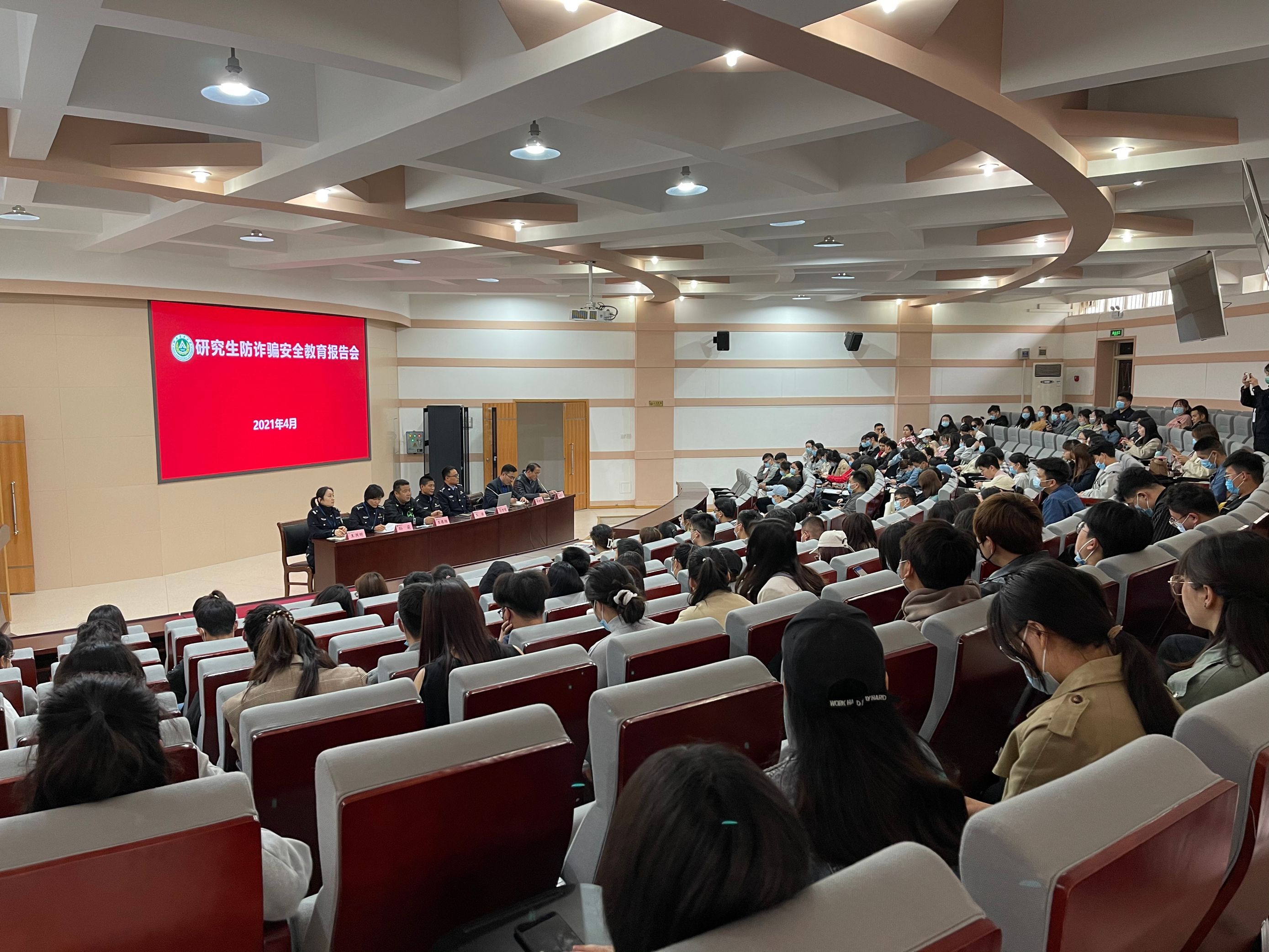 为丰富学生生活常识、提高学生防诈骗意识、杜绝校园诈骗事件发生,4月22日下午3点,郑州市公安局金水区分局反诈中心民警马万能警官在云顶娱乐 文化路校区三百人报告厅作出“提高防骗意识,远离诈骗陷阱”主题报告。云顶娱乐 部分研究生参加。