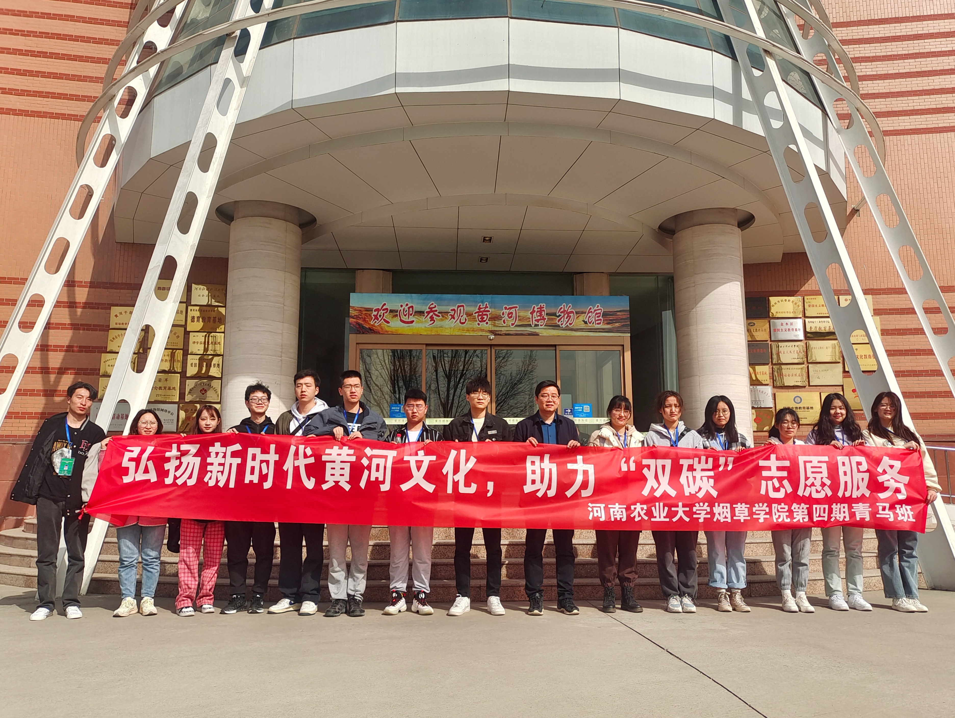 黄河博物馆内,青马班学员们在讲解员的带领下,深刻研学了黄河流域的地理、地貌、气候等自然概况以及历代水旱灾害、河患治理、水土保持、水资源开发利用、治理开发的远景规划等黄河文化,感悟黄河魅力,传承黄河精神,此外,学员们在黄河周边、街道两侧、公园广场的卫生死角、绿化带内的垃圾杂物等进行了集中清理,干劲十足、配合默契,恢复了黄河生态园区的整洁有序,助力双碳行动。
