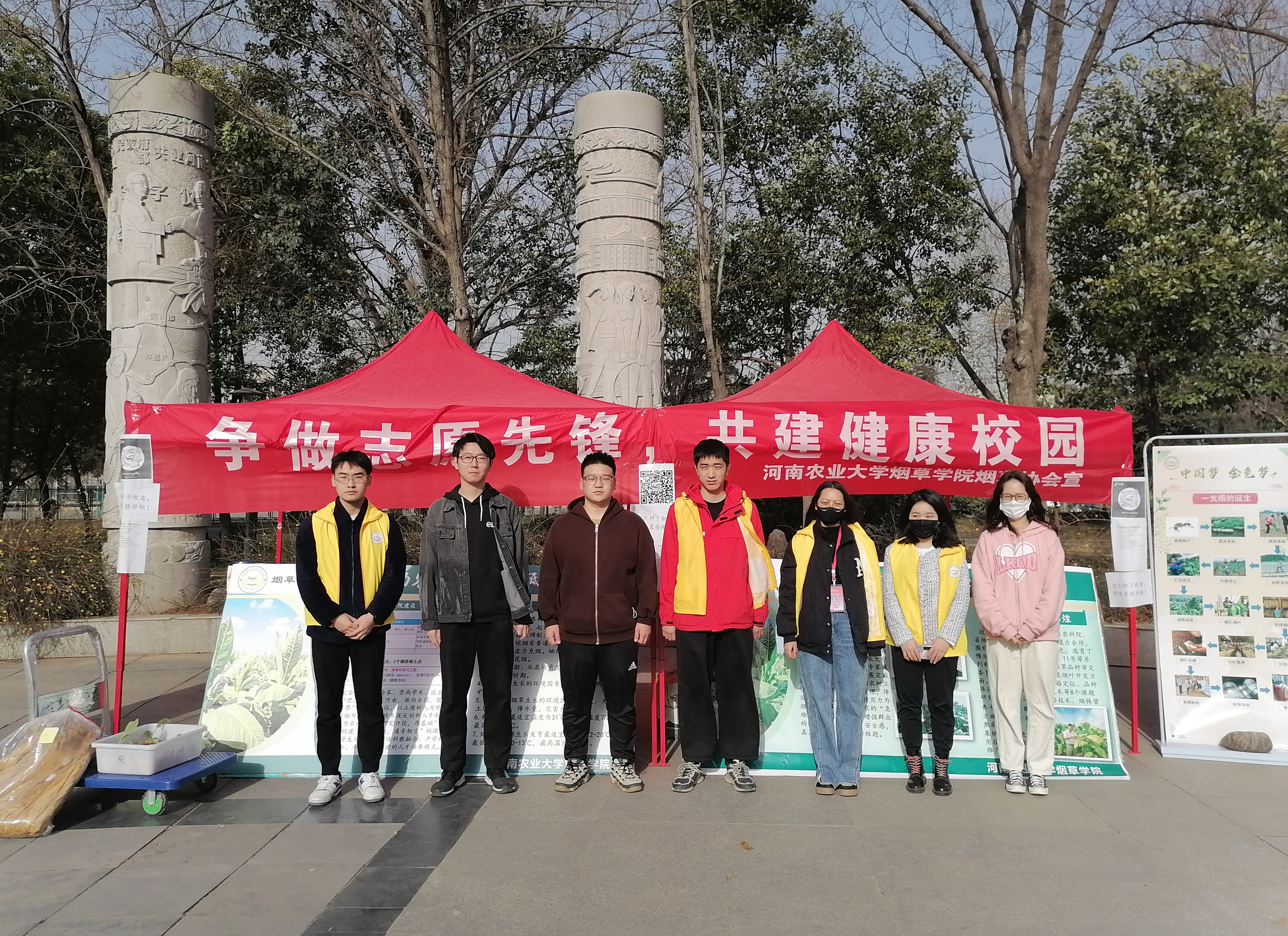 文化路校区,志愿者们通过科普烟草小知识,展示烟草扶贫救灾事迹,传递志愿服务精神,并向同学们赠送小礼品。让农大学子充分感受到了烟草人在“争做志愿先锋”中所体现的积极向上、乐于奉献的雷锋精神,在“共建健康校园”中所体现的协同奋进、忠于健康的精神。