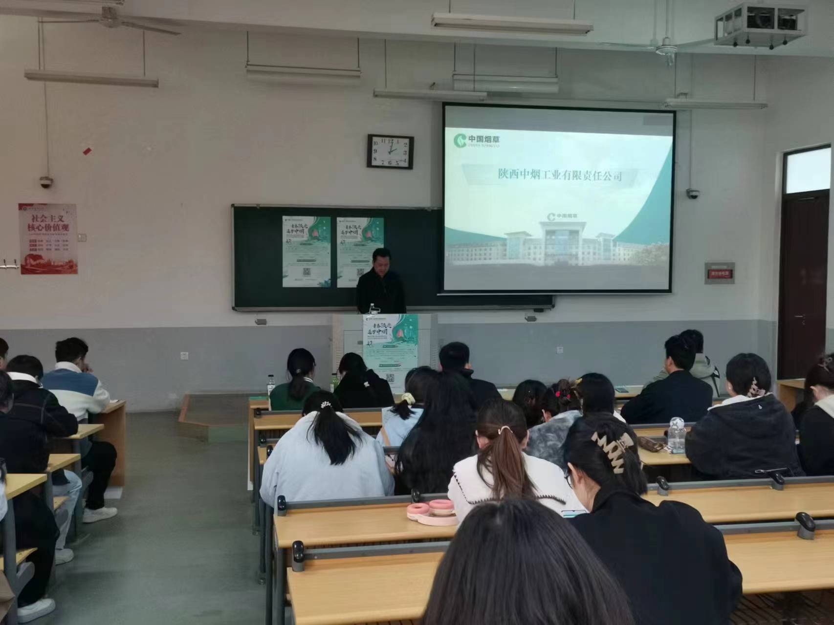 参与组织的关于陕西中烟工业有限责任公司的就业宣讲会在3月12日下午于繁塔楼大教室e107大教室开幕,会议由企业相关负责人主持。陕西中烟工业有限责任公司是中国烟草总公司全资设立的国有企业,下辖宝鸡、延安、汉中、旬阳、澄城5个卷烟厂,拥有陕西好猫卷烟材料有限责任公司、宝鸡好猫实业(集团)有限公司2家全资多元化企业。