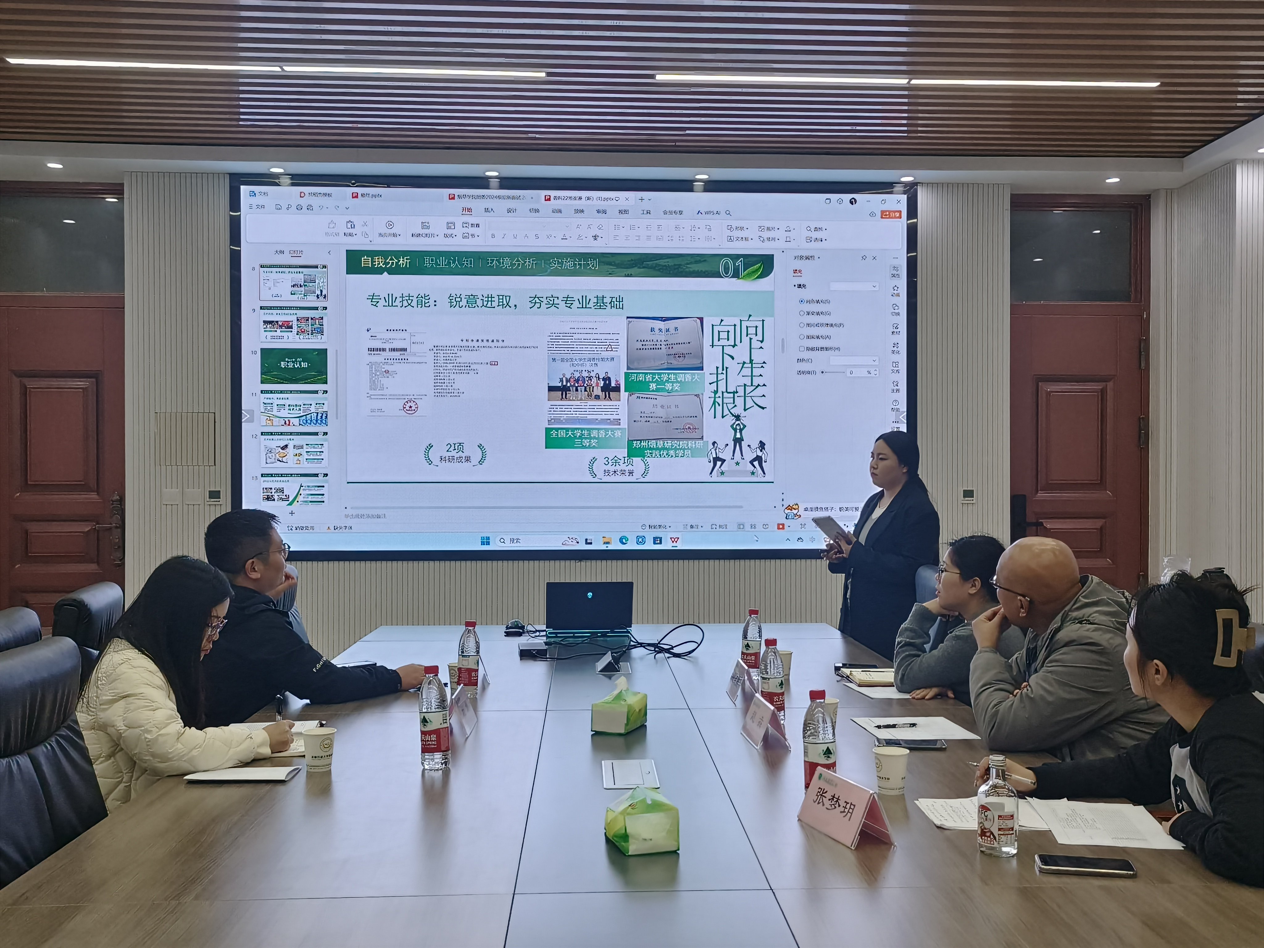 在龙子湖校区力行楼211举办大学生职业规划大赛决赛。赵犇、刘冰洋、胡旦旦、杜娇、张梦玥五位老师担任评委。
