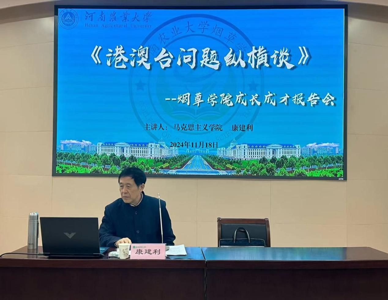 报告会上,康建利从“港澳台问题的由来、‘和平统一、一国两制’的科学构想及其实践、完成祖国统一的历史任务”等三大方面深入剖析了当今港澳台问题,并提醒同学们要树立正确的大历史观、大时代观、大文化观。