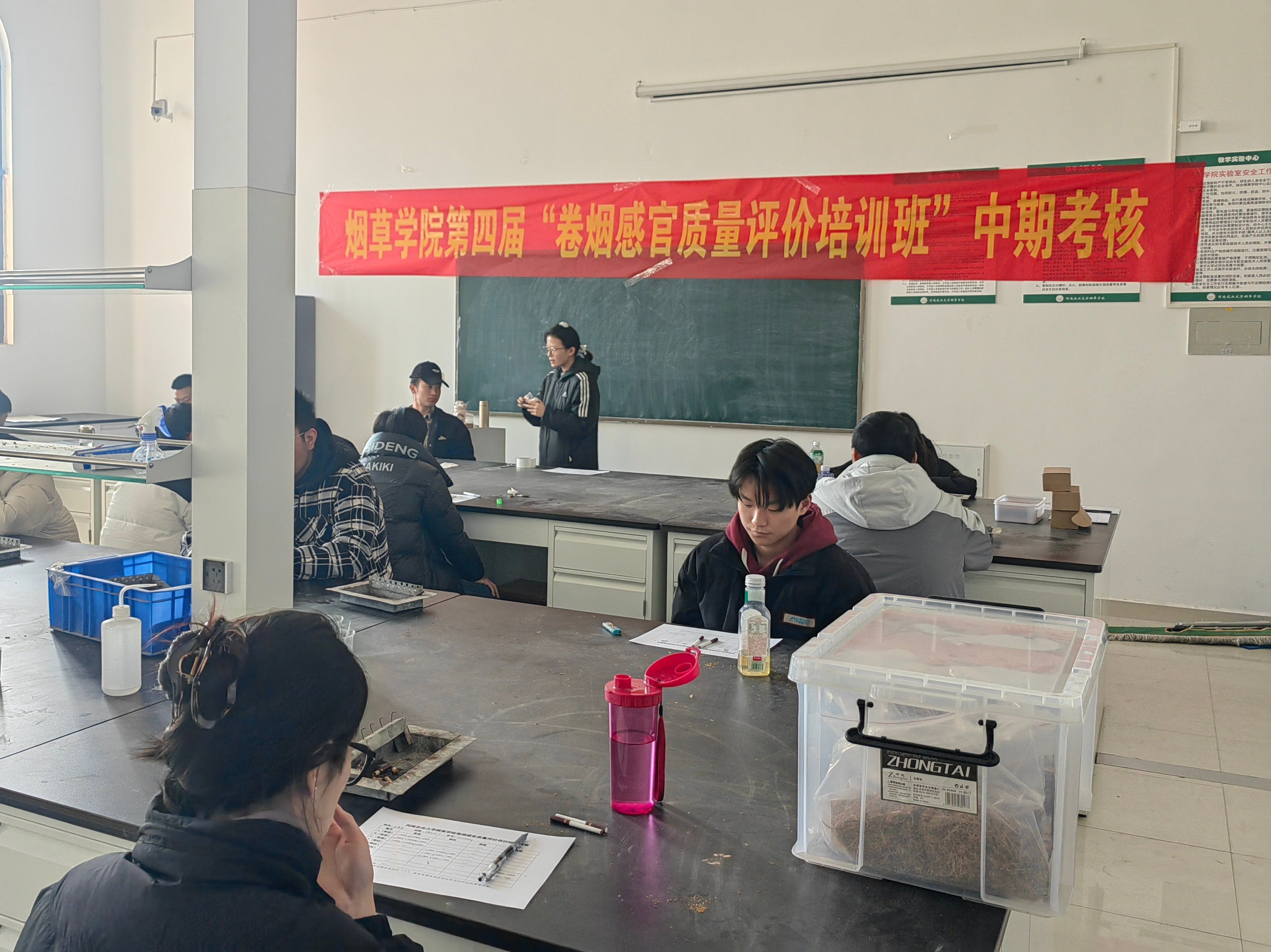 考核内容聚焦于单料烟的评析,要求学生运用大小循环技巧,根据烟气在口、鼻、喉中的综合感受,准确评估烟支或烟丝的特征。在考核过程中,要求学生们对分发的不同烟丝样品进行细致的评析,辨别出不同单料烟的香型和部位。