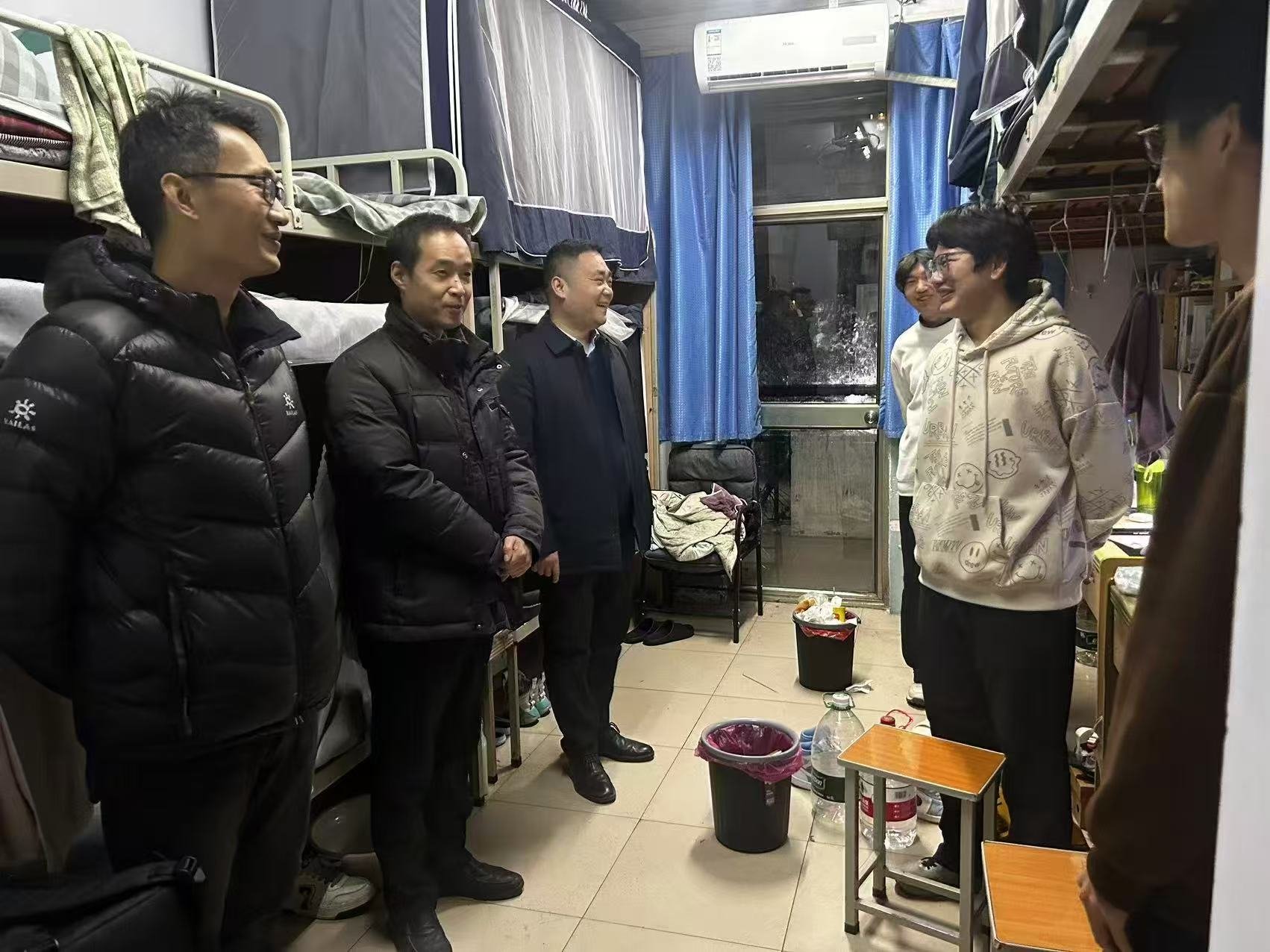 领导班子成员带队,各系主任、全体辅导员共同参与,深入桃李园、龙子湖校区学生宿舍,开展期末生活慰问与冬季安全隐患排查专项工作。