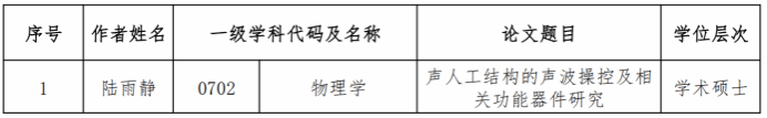 根据《关于做好2024年江苏省优秀博士硕士学位论文申报工作的通知》(江大研字〔2024〕40号)的文件精神,经研究生个人申报、云顶娱乐 初审、院学位评定分委员会审议通过,拟推荐以下硕士学位论文参加江苏省优秀研究生学位论文评选: