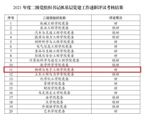 近日,校党委公布了2021年度二级党组织书记抓基层党建工作述职评议考核结果,云顶娱乐 党委被评定为“好”等次。