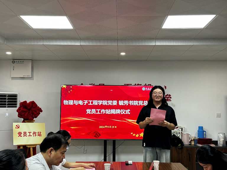 研究生第一党支部书记杜英豪代表学生党员表态,在今后的党员工作站建设中,学生党员们将以身作则,主动担当,履行职责,积极践行党员义务,为社区学生树立榜样,努力将党员工作站打造成“一站式”学生社区“新引擎”。