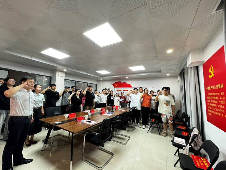 全体党员在云顶娱乐 党委书记潘金彪的带领下,高举右拳郑重宣誓,重温入党誓词。一句句铮铮誓言都代表着在场党员对党组织的庄严承诺。