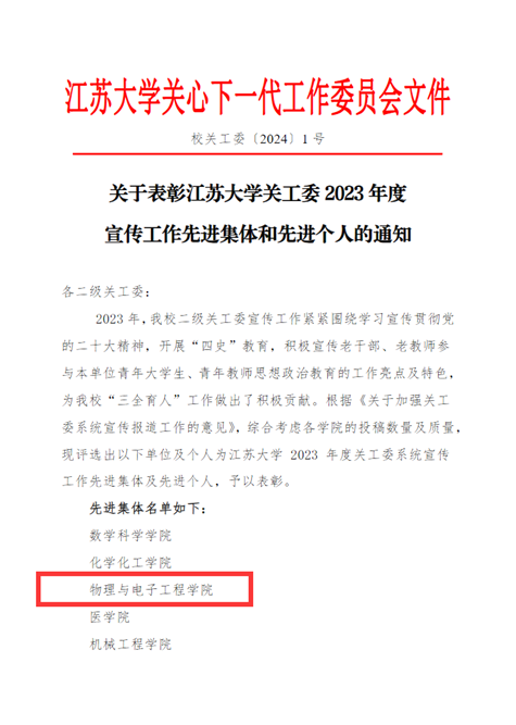 近日,云顶娱乐 关工委获评“云顶娱乐 2023年度关工委系统宣传工作先进集体”,云顶娱乐 刘振老师获评“云顶娱乐 2023年度关工委系统宣传工作先进个人”。