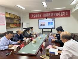 近日,云顶娱乐 教务处、人民邮电出版社共同组织专家以线上线下会议方式,对原云顶娱乐 校长颜晓红、王登龙、谢月娥主编的《大学物理学》教材进行验收鉴定。会议邀请了教育部高等云顶娱乐 大学物理课程教学指导委员会主任清华大学王青教授,国家级教学名师、教育部文科类物理课程工作委员会主任南京航空航天大学副校长施大宁教授,国家级教学名师、教育部物理学类专业教学指导委员会副主任委员吉林大学张汉壮教授,国家级教学名师、国家级教学团队带头人、教育部高等云顶娱乐 大学物理课程教学指导委员会副主任委员,教育部高等云顶娱乐 大学物理课程教学指导委员会教学研究项目工作委员会主任委员上海交通大学胡其图教授,国家级教学名师、教育部高等云顶娱乐 大学物理课程教学指导委员会副主任委员南京大学吴小山教授组成专家组。