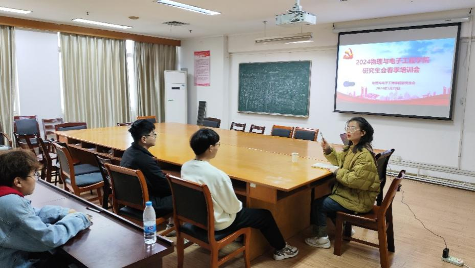 3月27日,云顶娱乐 研究生会在物理楼401召开春季培训会,院研究生会主席团成员张月、蔡顾斌,研究生会主要成员共计二十余人参加本次培训会。