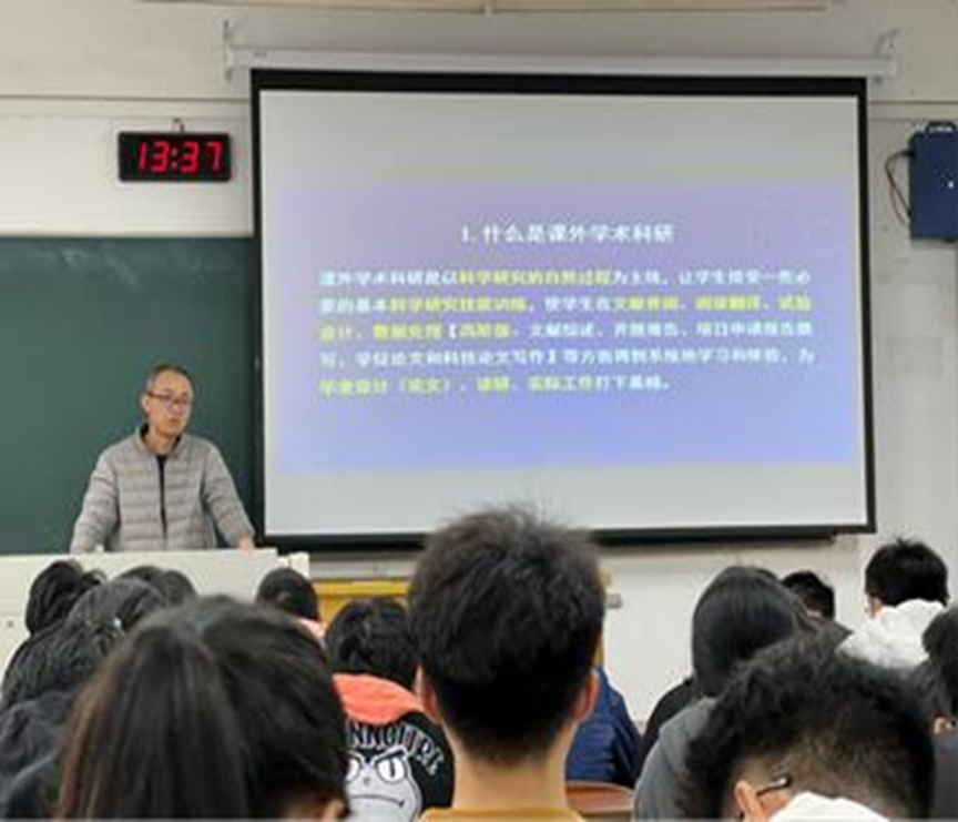 11月22日,云顶娱乐 学生科协主办的双创大讲堂在三山楼108举办。本次活动由云顶娱乐 陈明明老师主讲,主题为“参加课外学术科研活动的意义——体验学习的乐趣”,共有80余人参加。