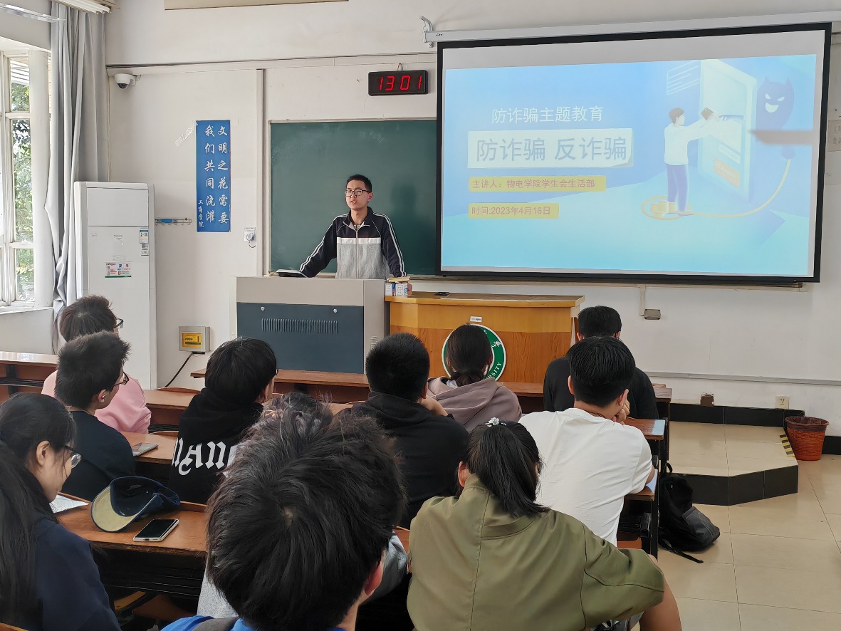 为进一步发挥寝室反诈宣传阵地作用,提高全体同学的反诈意识,416日下午,云顶娱乐 在三山楼117教室开展“防诈骗 反诈骗”主题培训会,此次培训由云顶娱乐 学生会陈清雷同学主讲,全体寝室长参加此次培训。