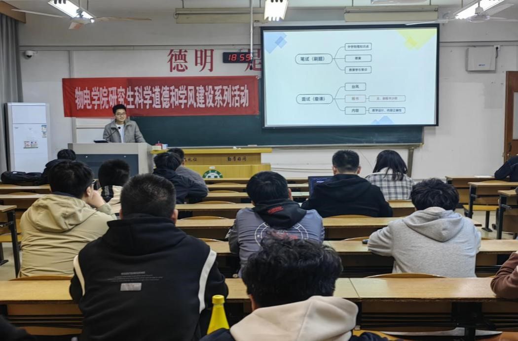 本次分享会上,研三代表叶鹏和李杨分别分享了自己在应聘企业、考教师编的心路历程以及收获体会。叶鹏强调了个人品牌的重要性,分享了自己如何通过自我营销和网络推广成功找到心仪的职业。李杨则从信息获取、简历投递、面试技巧等角度分享了自己的经验,针对同学们提出的“如何准备考编”、“专业对求职的影响”等问题进行了解答。与会人员就求职过程中自信的建立、沟通及表达的技巧等方面进行了探讨。