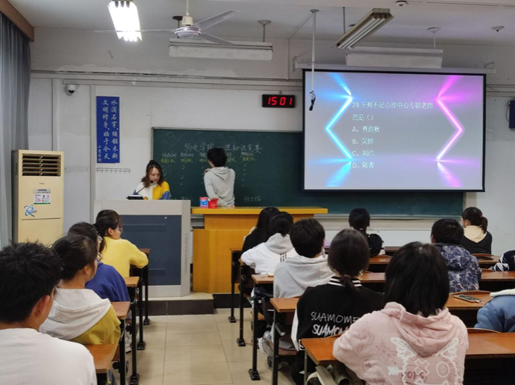 活动前期,心理协会联系各新生班心理委员进行宣传,让新生们充分了解了此次活动,为活动的顺利进行打下基础。比赛共分为组内轮流答题与小组间抢答答题2个环节,实现既考查了同学们的反应力,也考查了同学们的思维能力。
