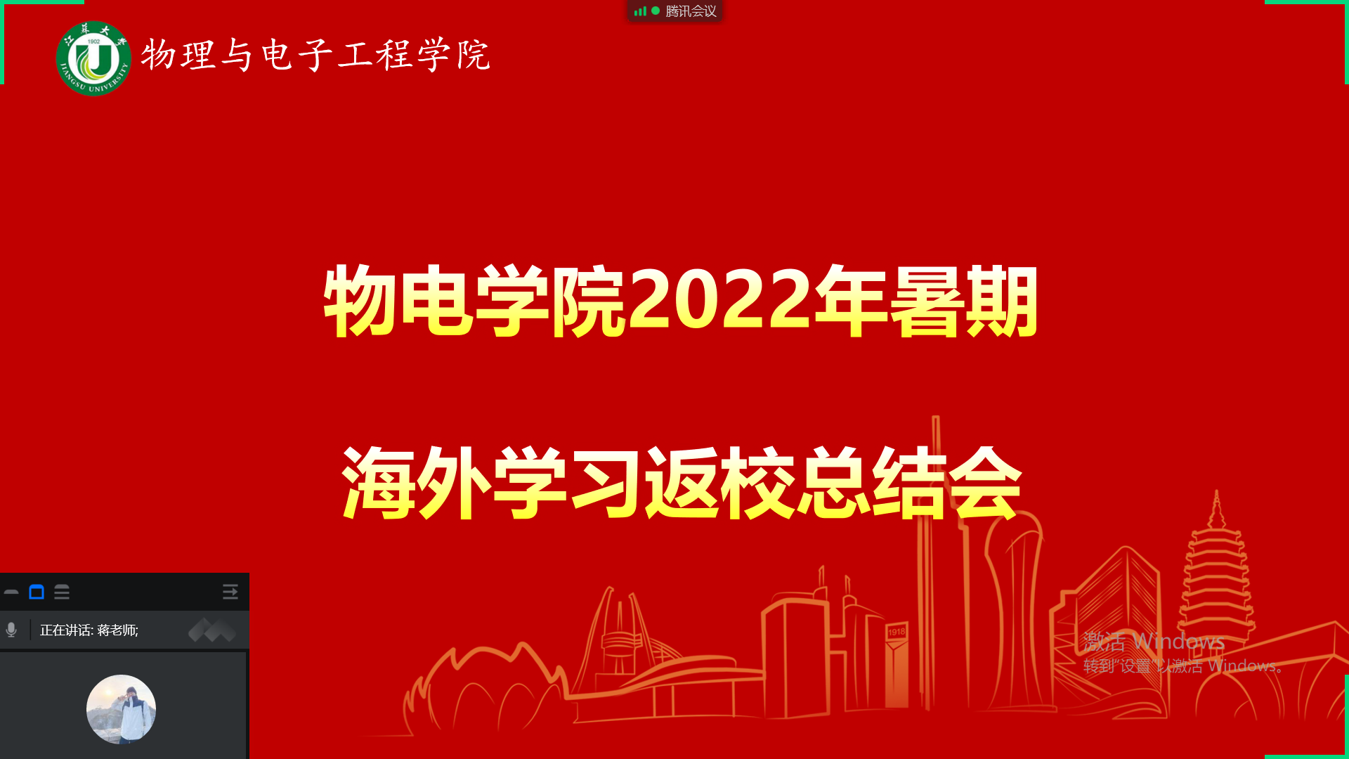 10月10日,云顶娱乐 通过腾讯会议召开暑期海外学习项目返校总结会。院党委副书记、副院长顾瑜婷,云顶娱乐 辅导员蒋春翔参加本次活动。