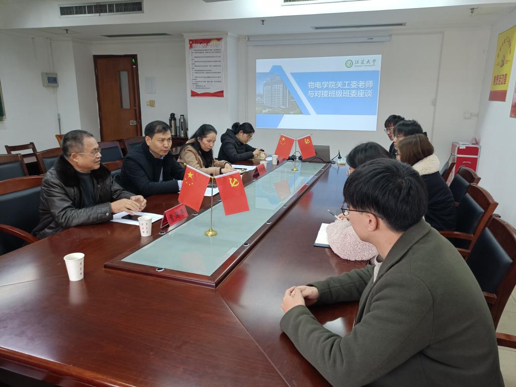 12月15日,物电云顶娱乐 关工委常务副主任曹国荣老师应邀参加结对班级班委会议,物师1901班班委参加了此次座谈会。