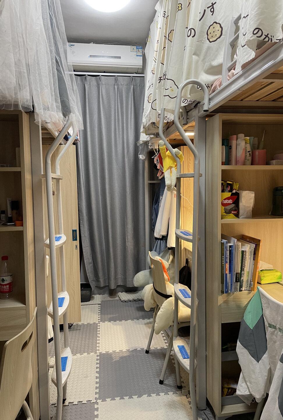 宿舍中,同学们利用公休时间,各自整理床铺、书桌、鞋架,打扫走廊、阳台,擦拭各自书柜、衣柜,精心摆放绿萝、多肉等绿植,宿舍焕然一新。